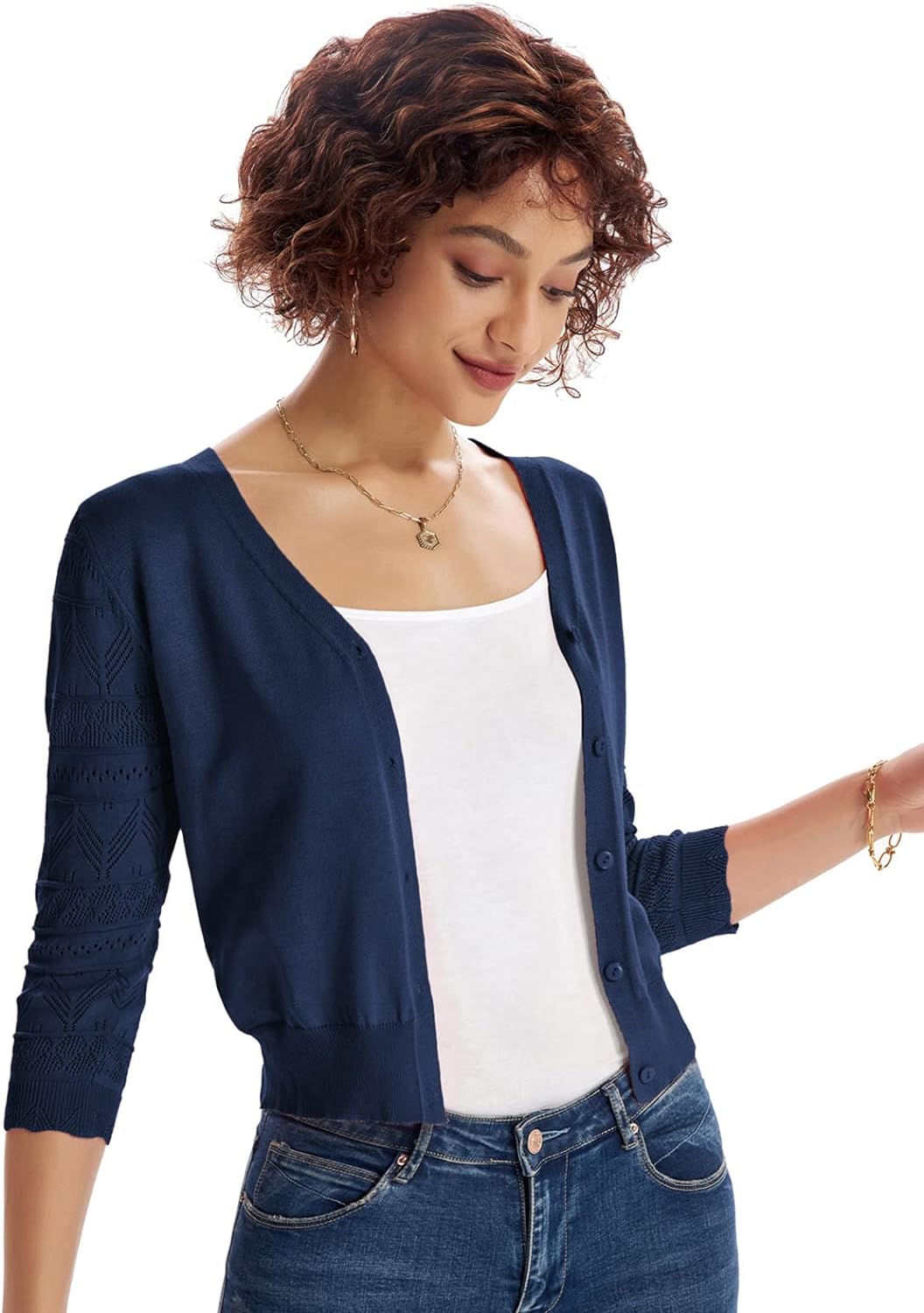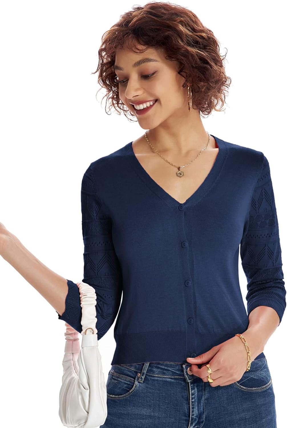 GRACE KARIN Women's Cardigans Shrugs for Dresses 3/4 Sleeve Cardigan V Neck Button Down Sweater Lightweight(Navy Blue)