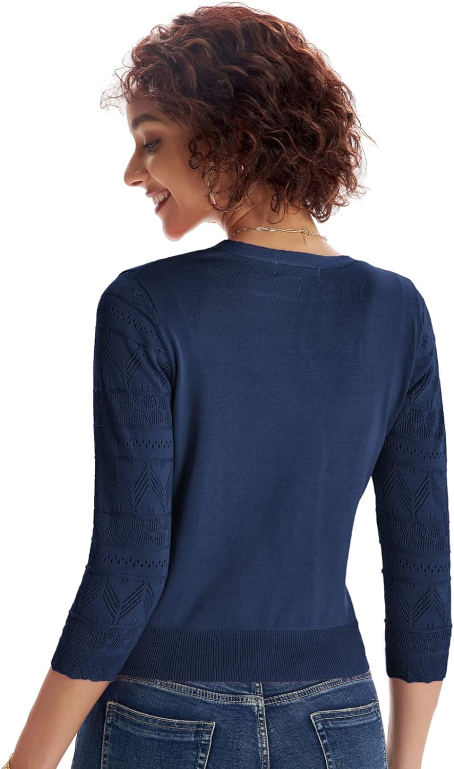 GRACE KARIN Women’s Cardigans Shrugs for Dresses 3/4 Sleeve Cardigan V Neck Button Down Sweater Lightweight(Navy Blue)