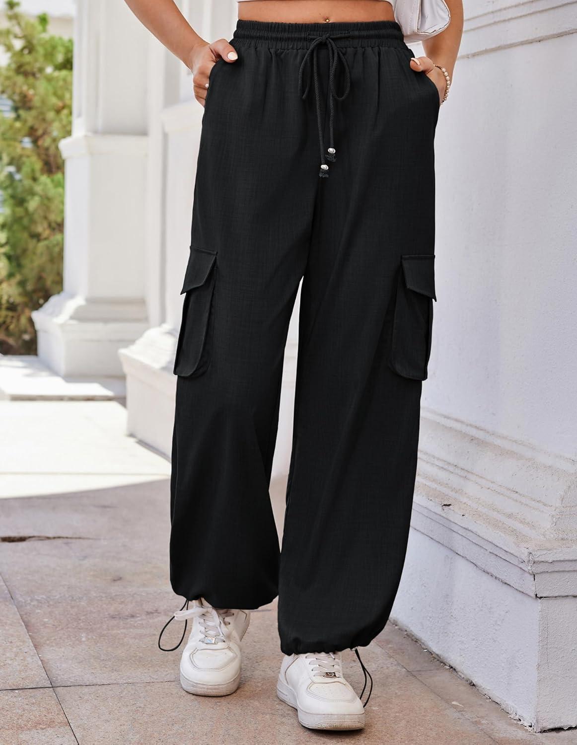 Get the GRACE KARIN Womens Cargo Pants Wide Leg High Waisted Lounge Palazzo Pants 2025 Summer Hikling Work Trousers with Pockets(Black) you want at a discounted price during our markdown sale event.