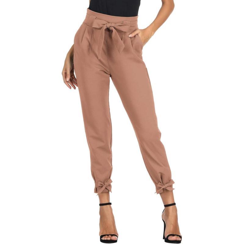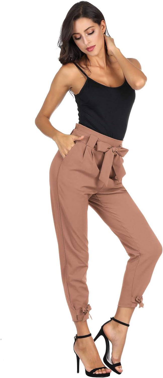 GRACE KARIN Womens Casual High Waist Pencil Pants with Pockets BowKnot Cropped Paper Bag Pants for WorkApricot
