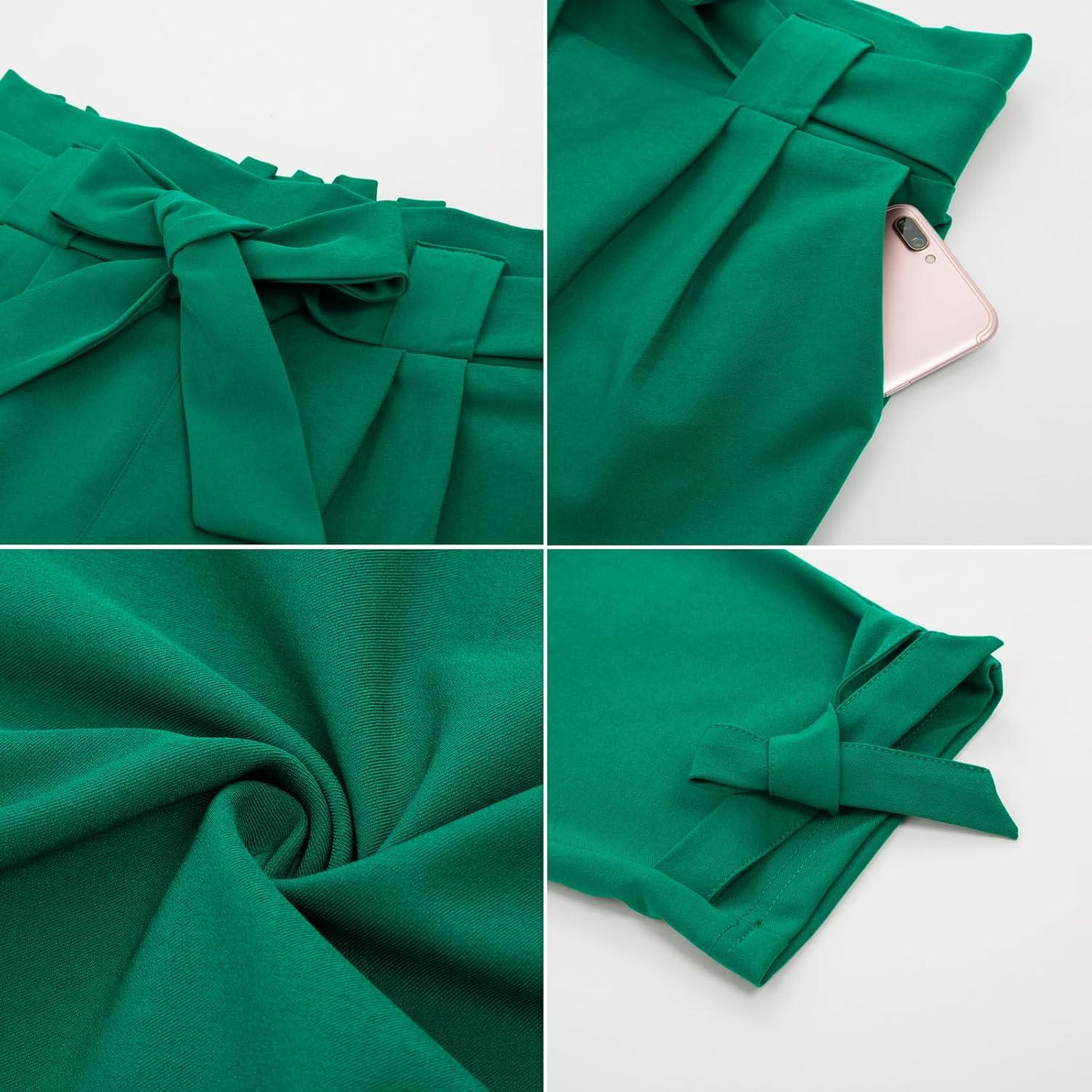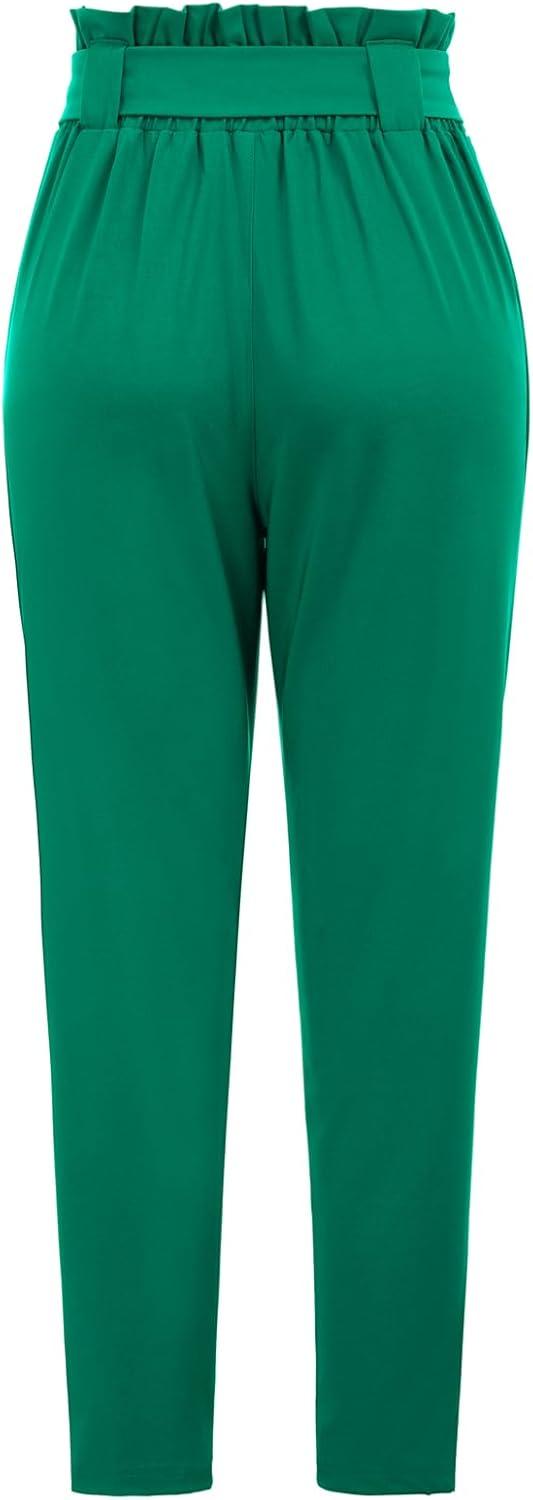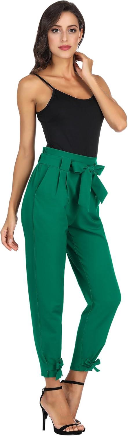 GRACE KARIN Womens Casual High Waist Pencil Pants with Pockets Bow-Knot Cropped Paper Bag Pants for Work(Green)