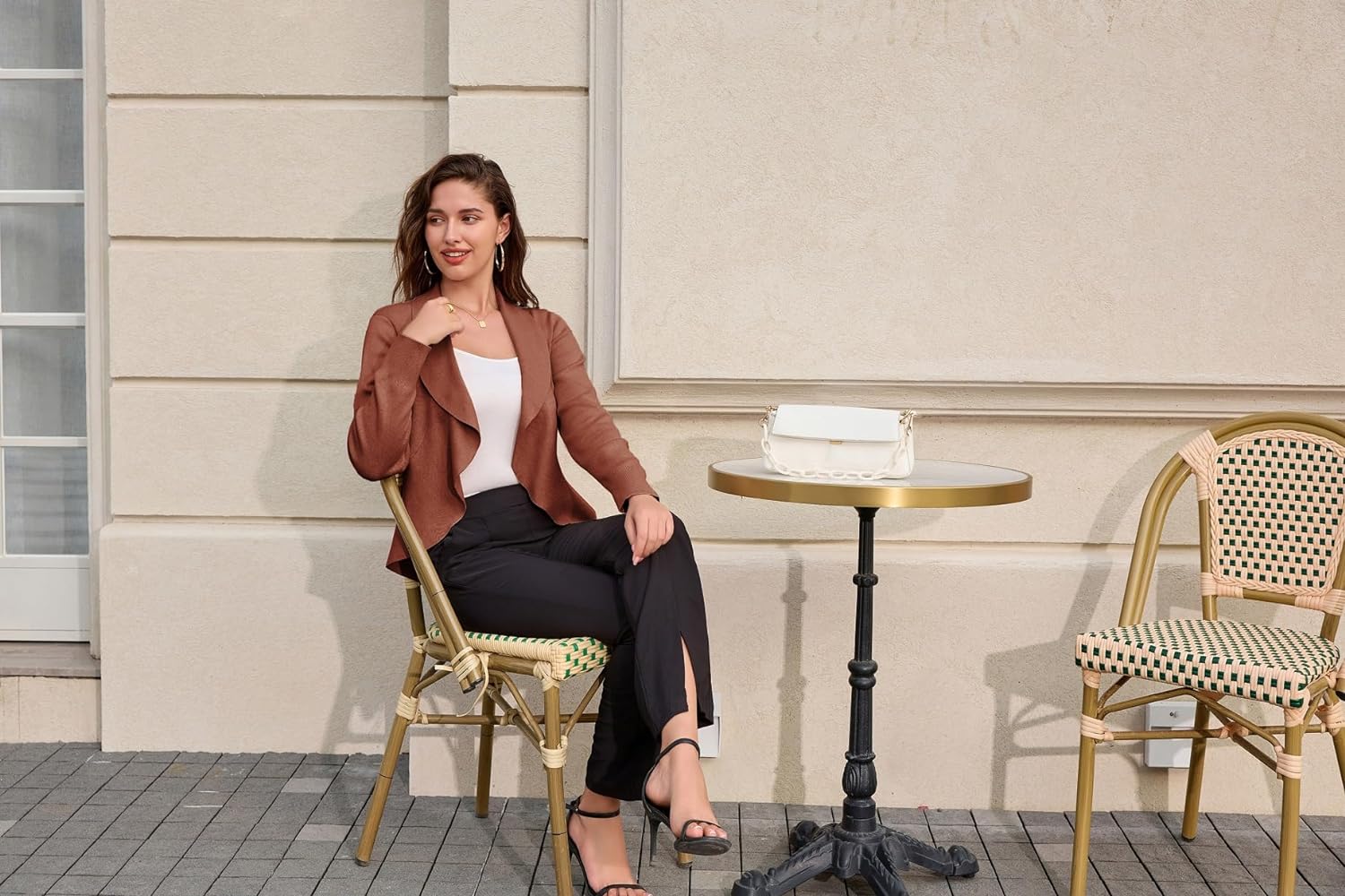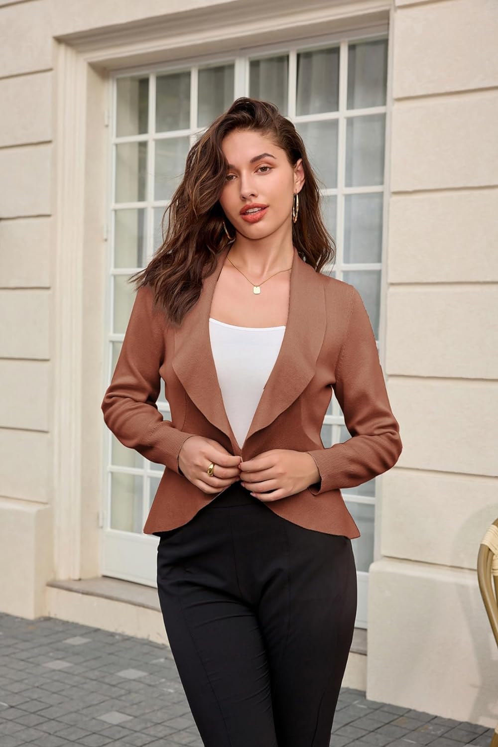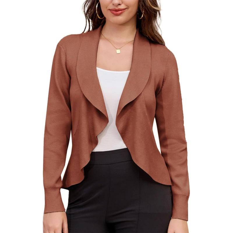 GRACE KARIN Womens Casual Lightweight Open Front Cardigans Soft Draped Ruffle ShrugsBrown