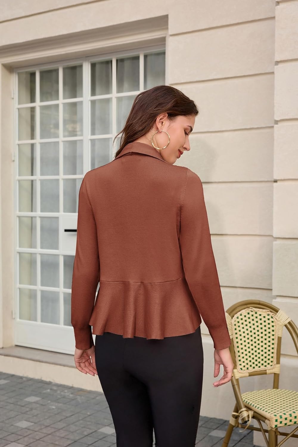 GRACE KARIN Women’s Casual Lightweight Open Front Cardigans Soft Draped Ruffle Shrugs(Brown)