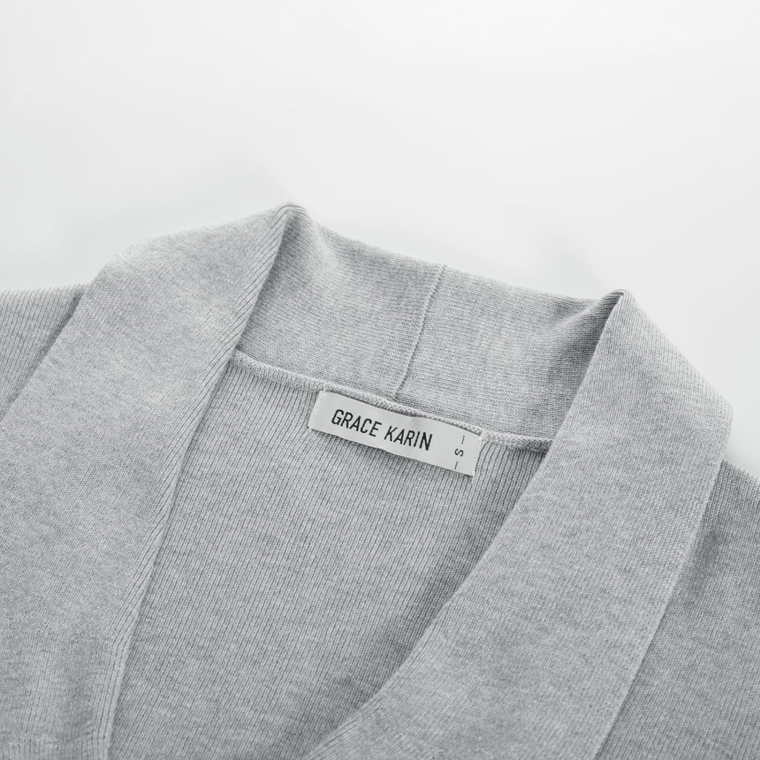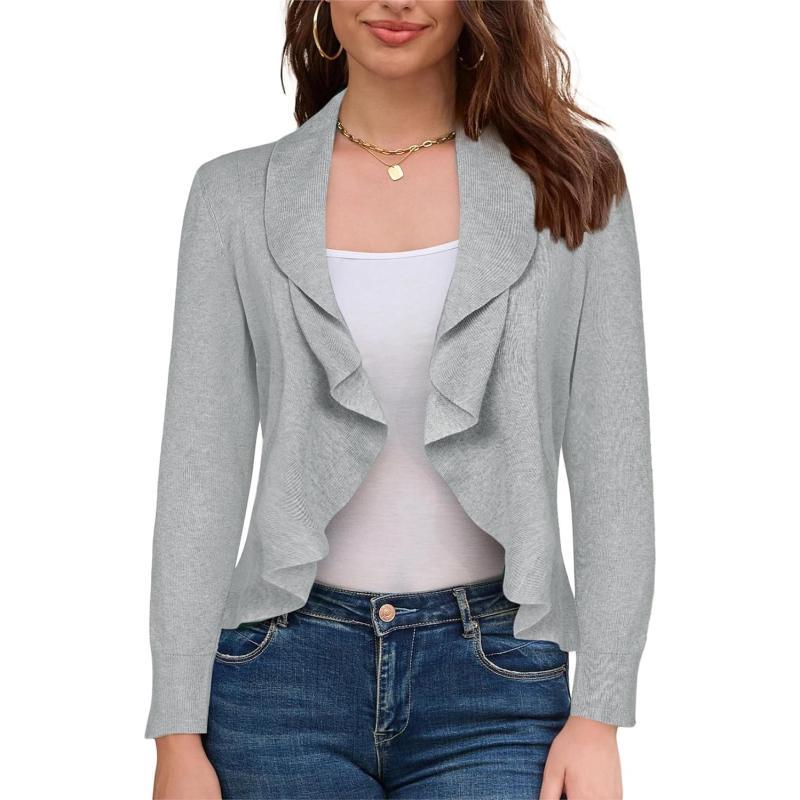 GRACE KARIN Women’s Casual Lightweight Open Front Cardigans Soft Draped Ruffle Shrugs(Light Gray)