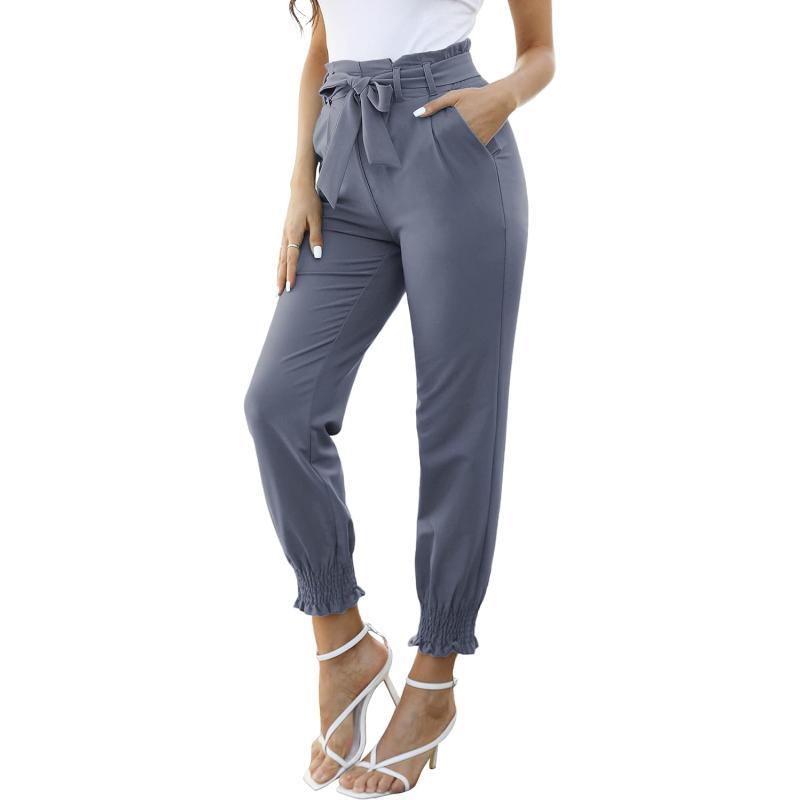 GRACE KARIN Womens Casual Pants Self Tie BowKnot Ankle Length Pencil Pants with PocketsBlue