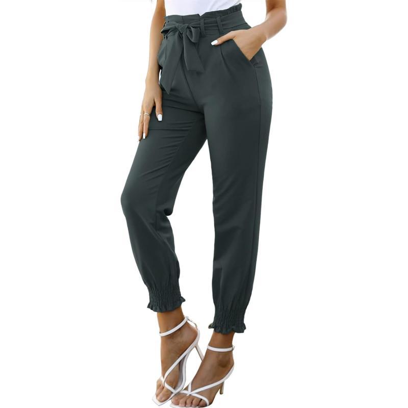 GRACE KARIN Womens Casual Pants Self Tie BowKnot Ankle Length Pencil Pants with PocketsCharcoal Gray