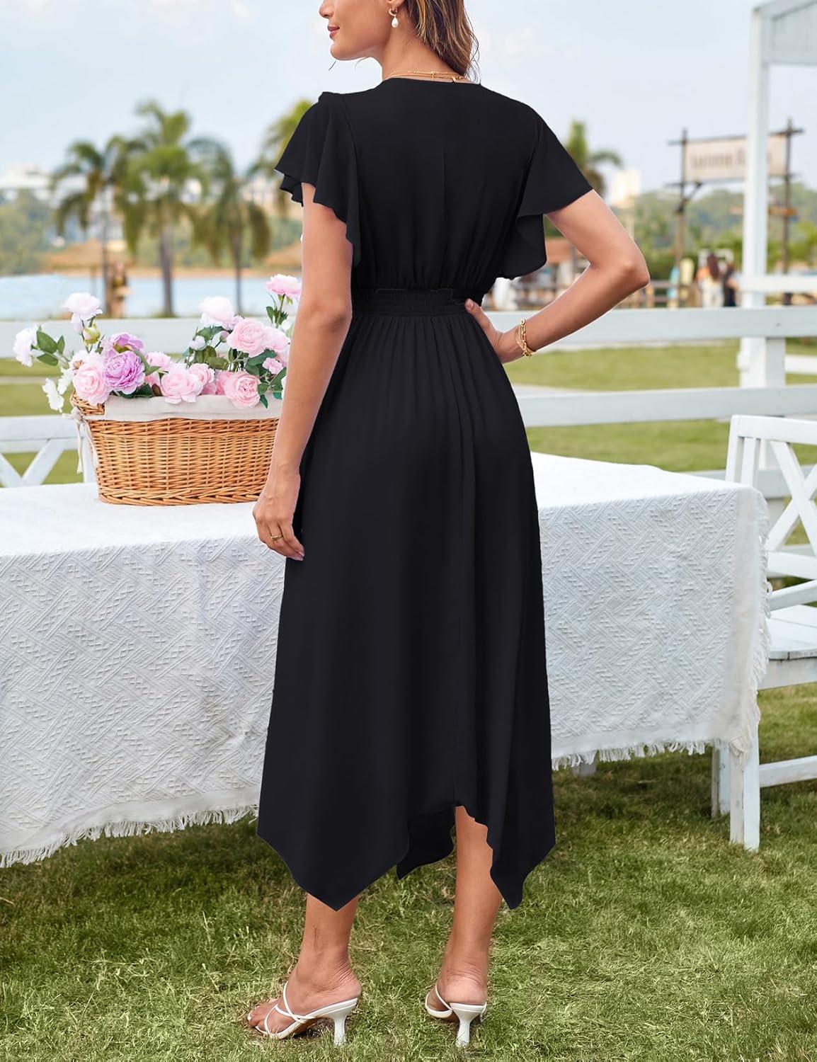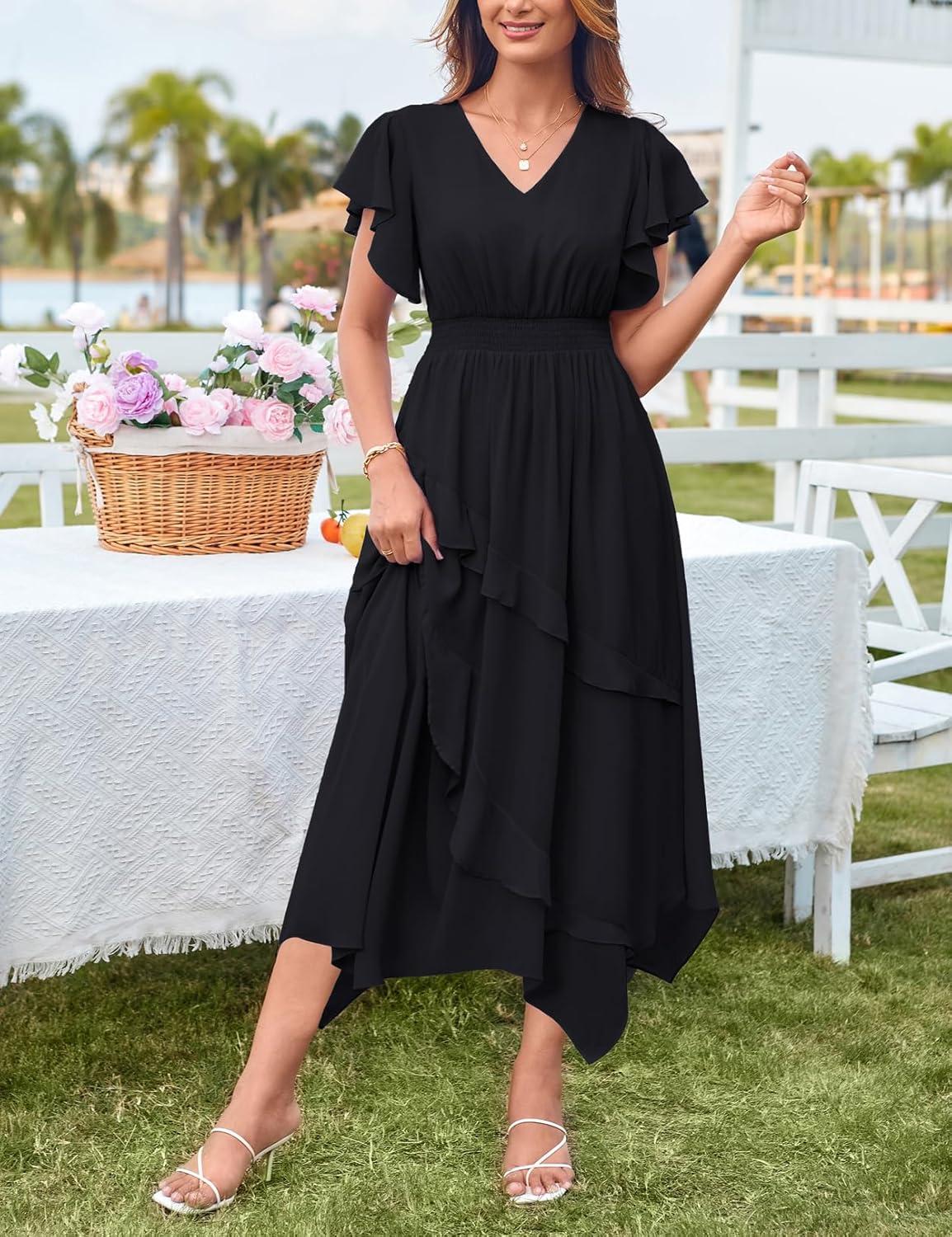 Save up to 40% on GRACE KARIN Women’s Casual Summer V Neck Flutter Ruffle Short Sleeve 2025 Empire High Waist Flowy Midi Dresses(Black) styles during our end-of-season sale.