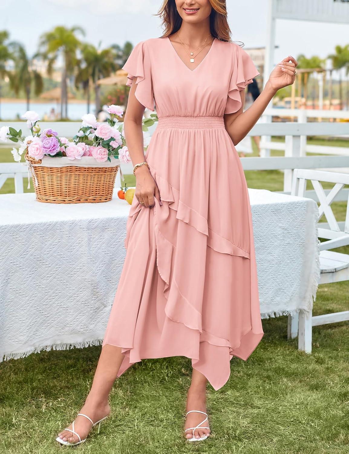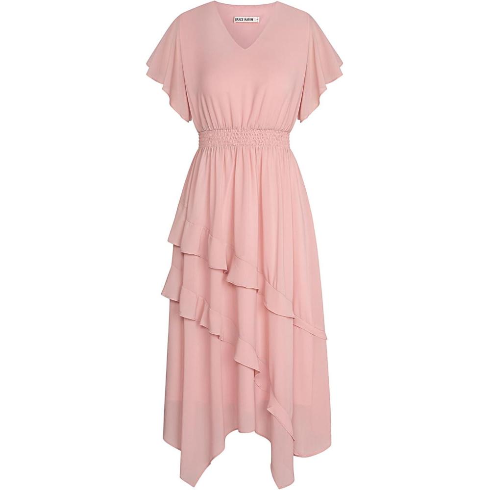 Be the first to review “GRACE KARIN Women’s Casual Summer V Neck Flutter Ruffle Short Sleeve 2025 Empire High Waist Flowy Midi Dresses(Pink)” Cancel reply