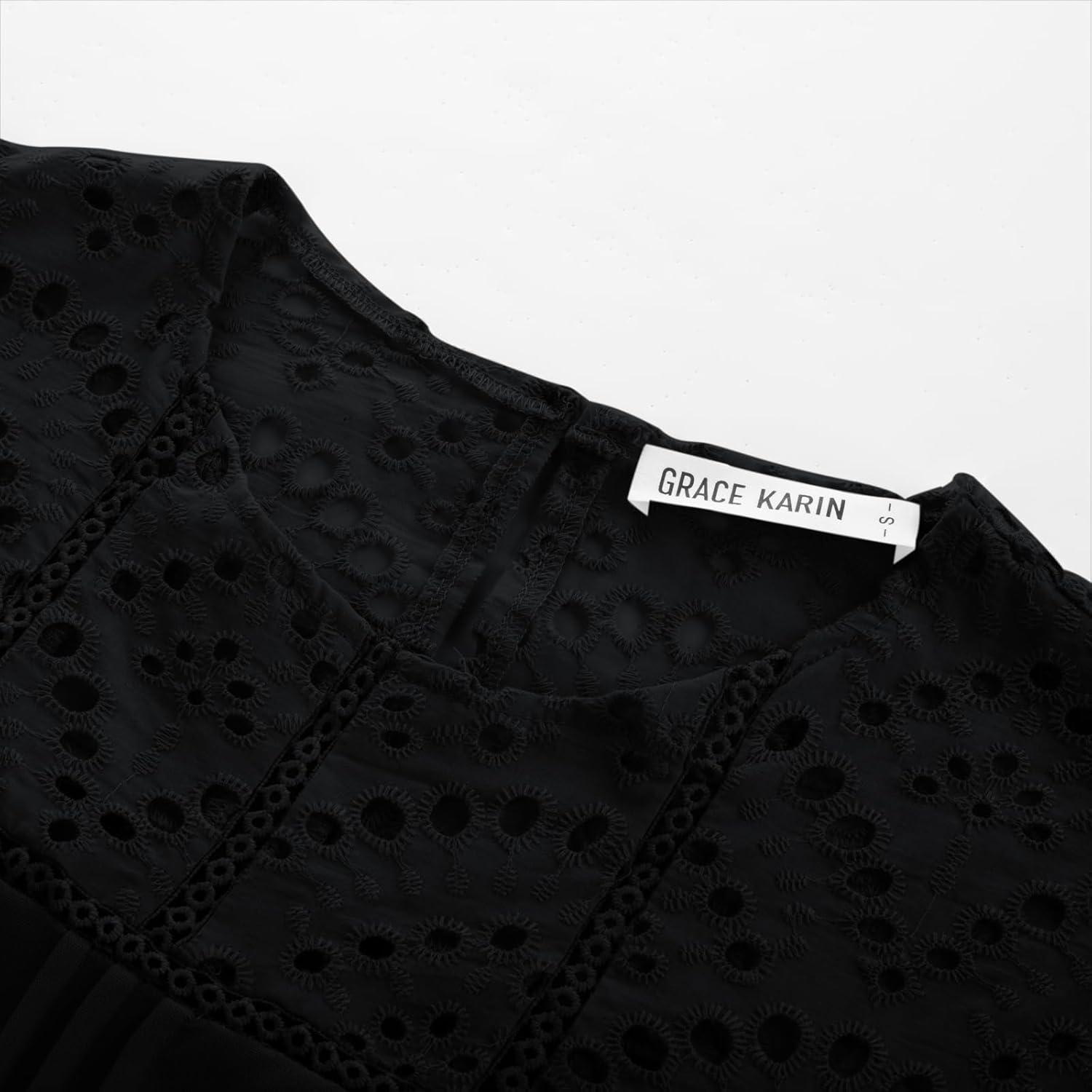 Get a free gift with your purchase of GRACE KARIN Women’s Casual Tops Short Sleeve Eyelet Embroidered Summer Trendy Shirts Crewneck Crochet Patchwork Blouses(Black). Limited quantities available!