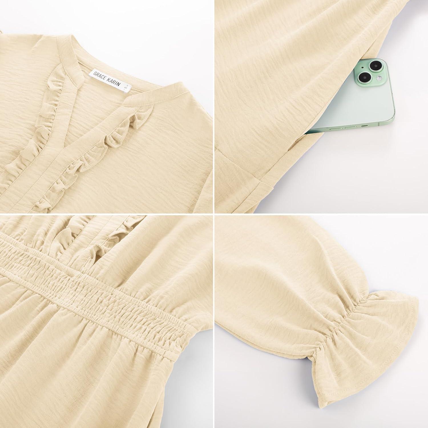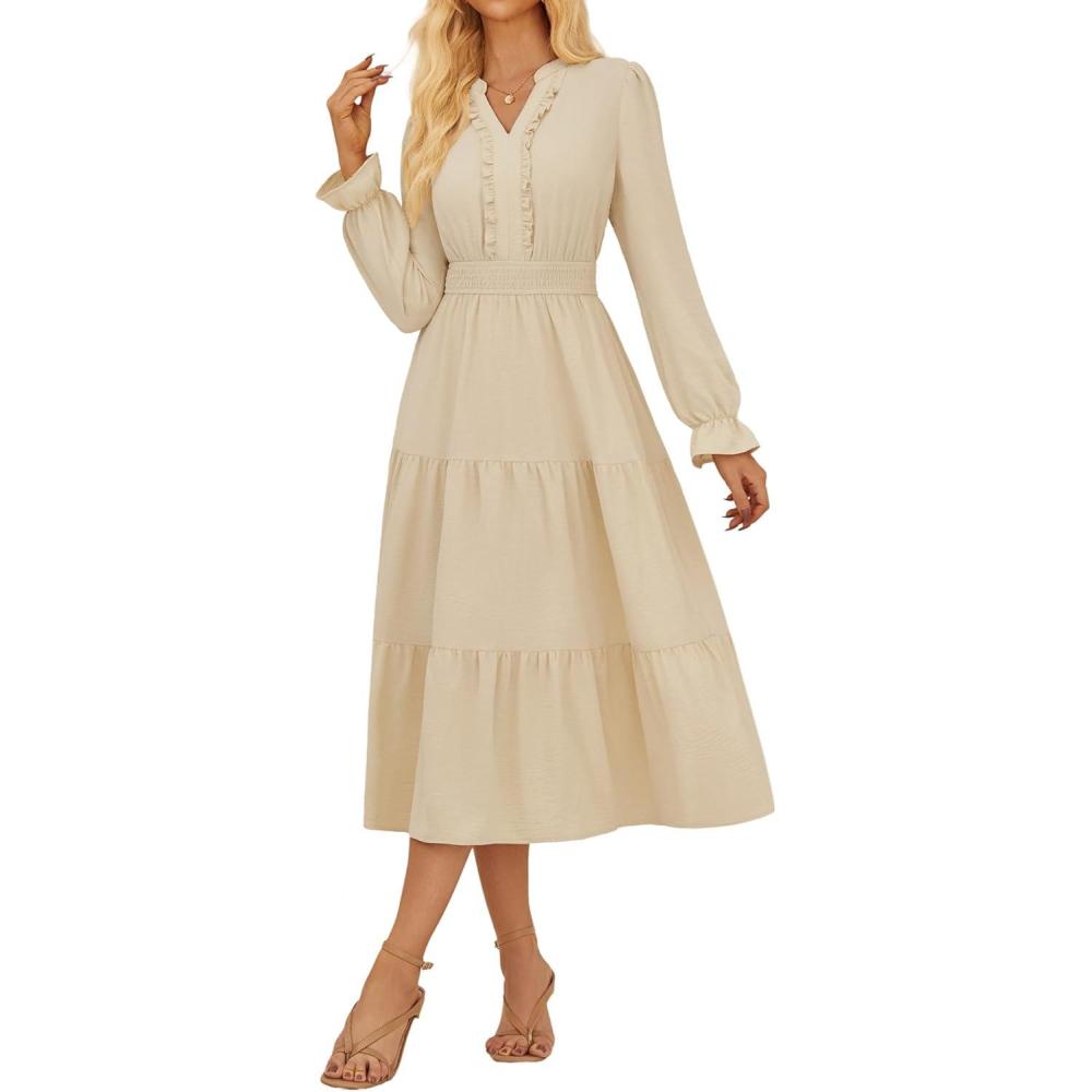 Our clearance event features the best deals on GRACE KARIN Women’s Casual V Neck Lantern Long Sleeve Ruffle Smocked Waist Tiered Midi A Line Dress with Pockets(Apricot) and accessories. Shop now!