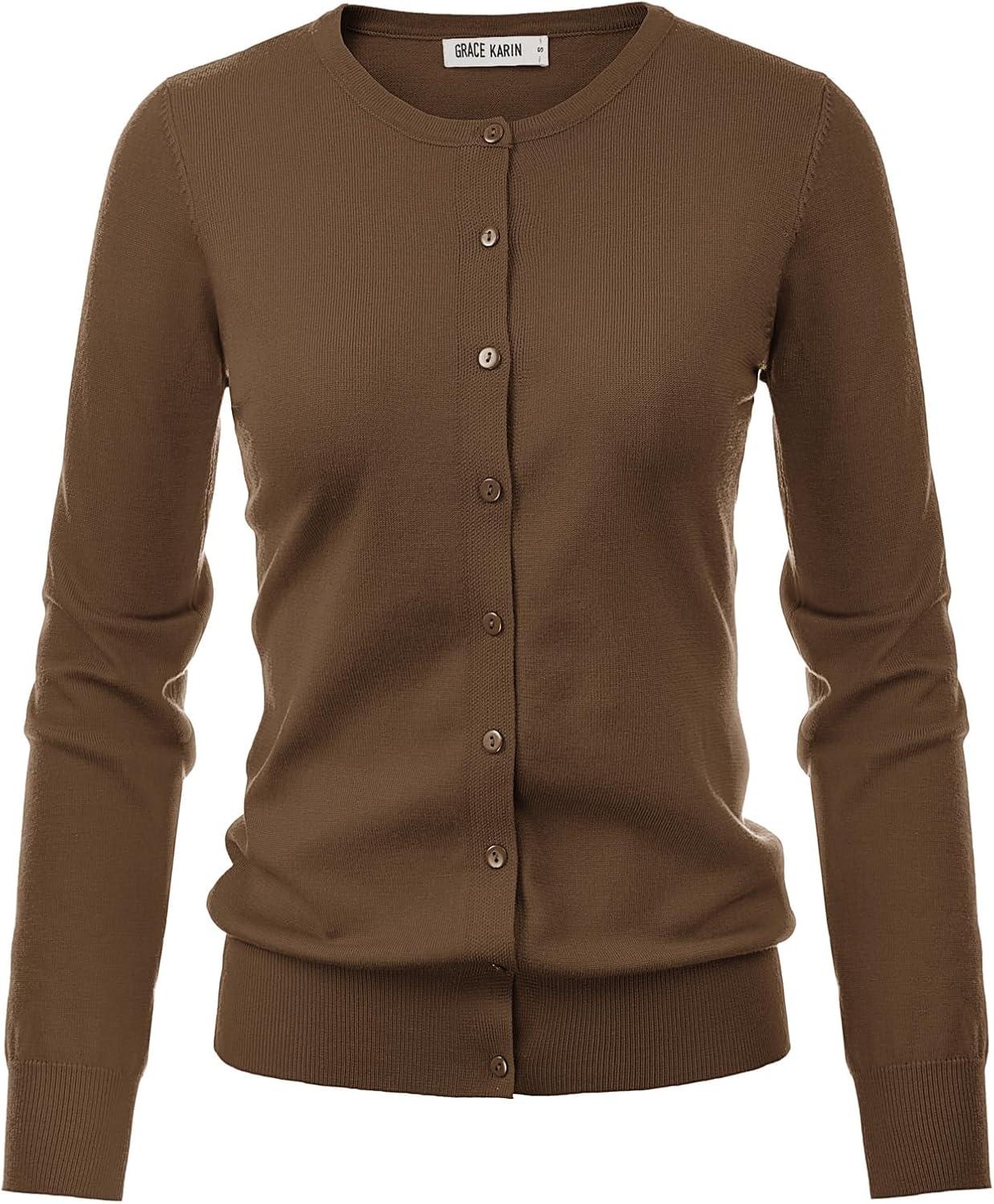 imageGRACE KARIN Womens Classic Long Sleeve Knit Cardigan Sweaters Casual Open Front Button Down Cardigans S3XLDark Brown