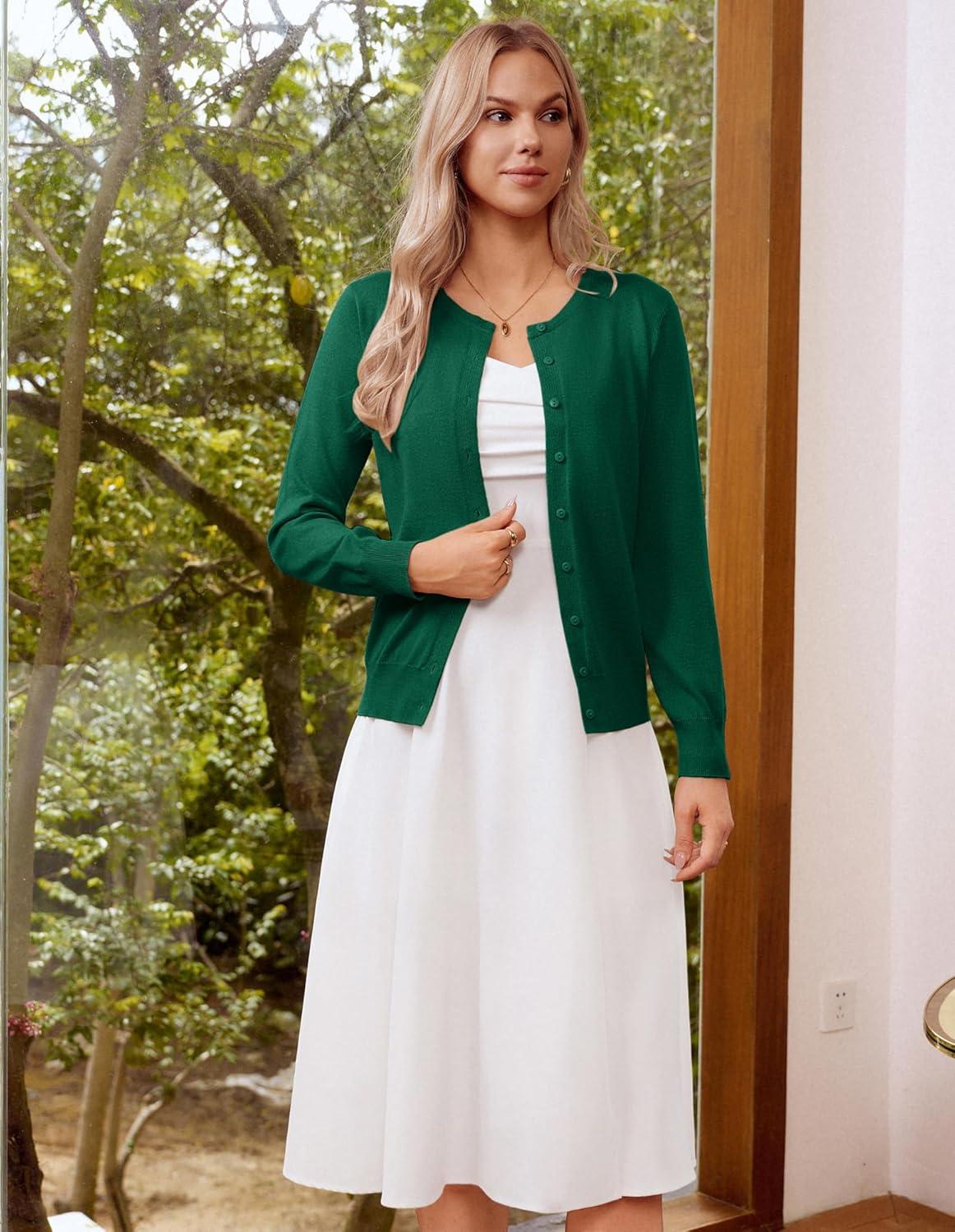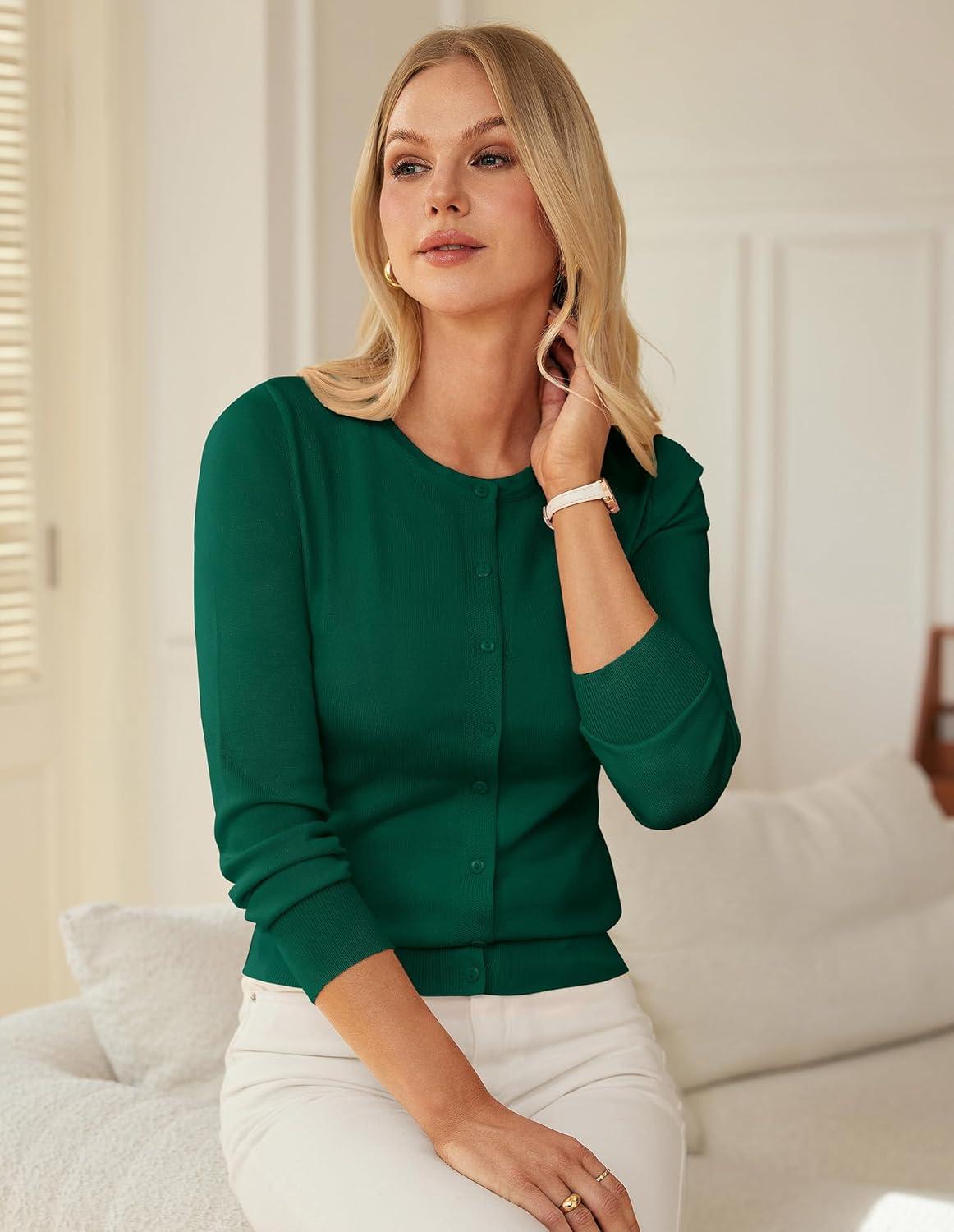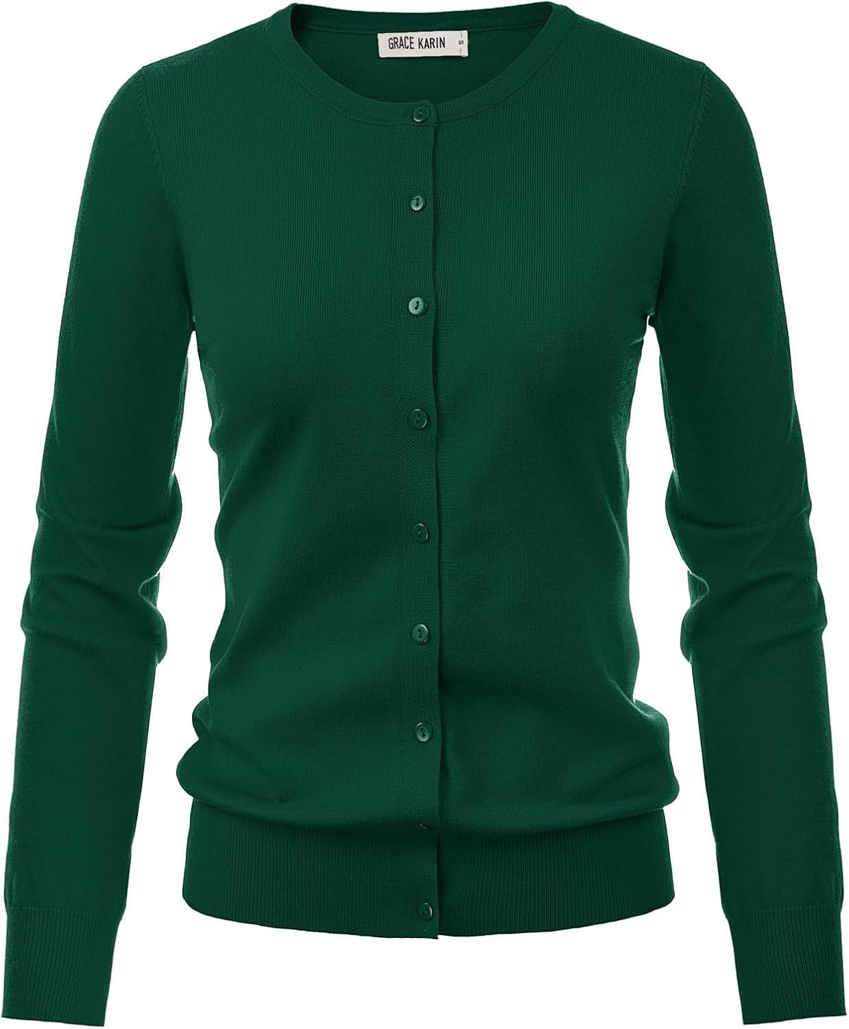 GRACE KARIN Women's Classic Long Sleeve Knit Cardigan Sweaters Casual Open Front Button Down Cardigans S-3XL(Dark Green)