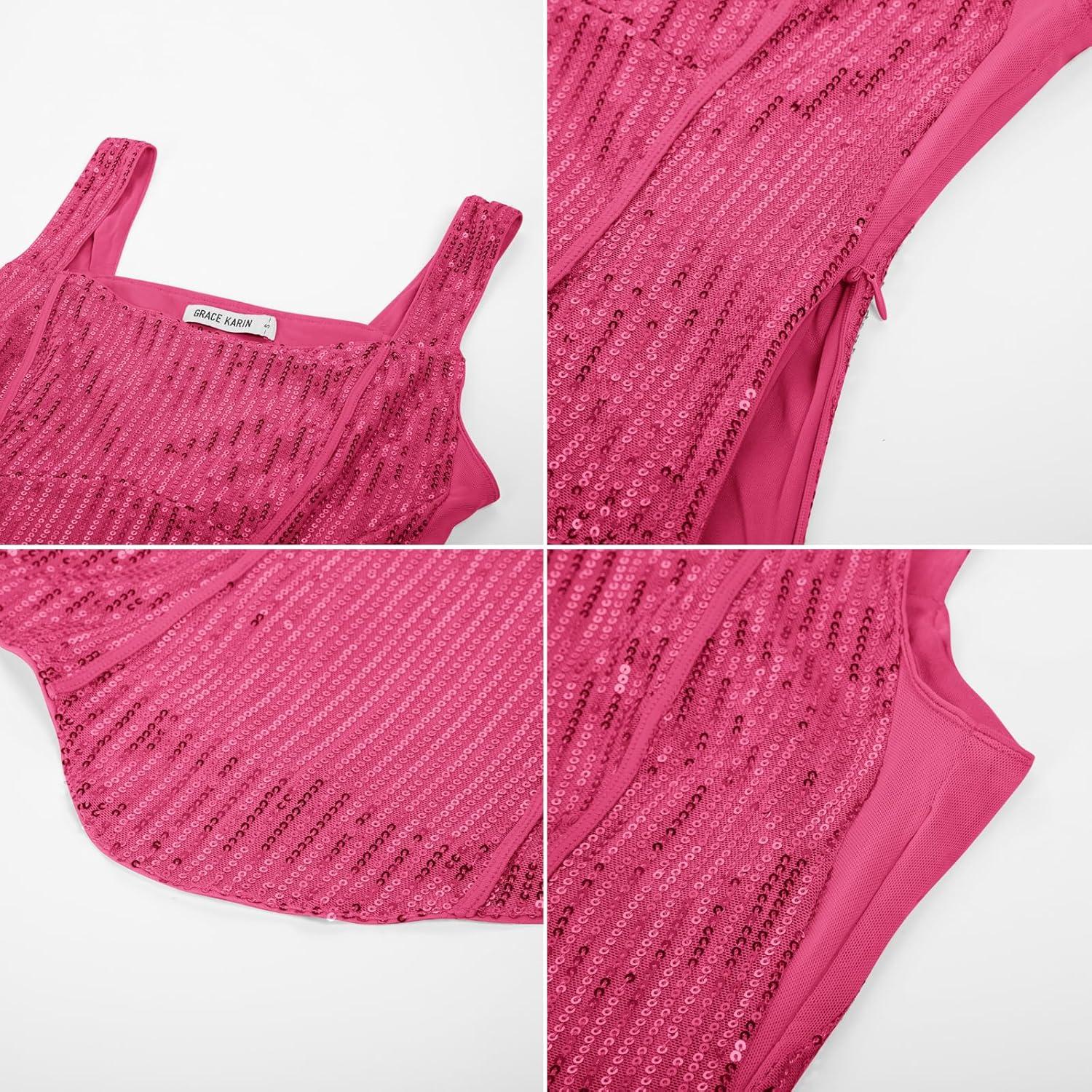 GRACE KARIN Sequin Shinning Bustier Corset Top for Women Sexy Slim Cami Tank Top Black White Summer Sleeveless Party