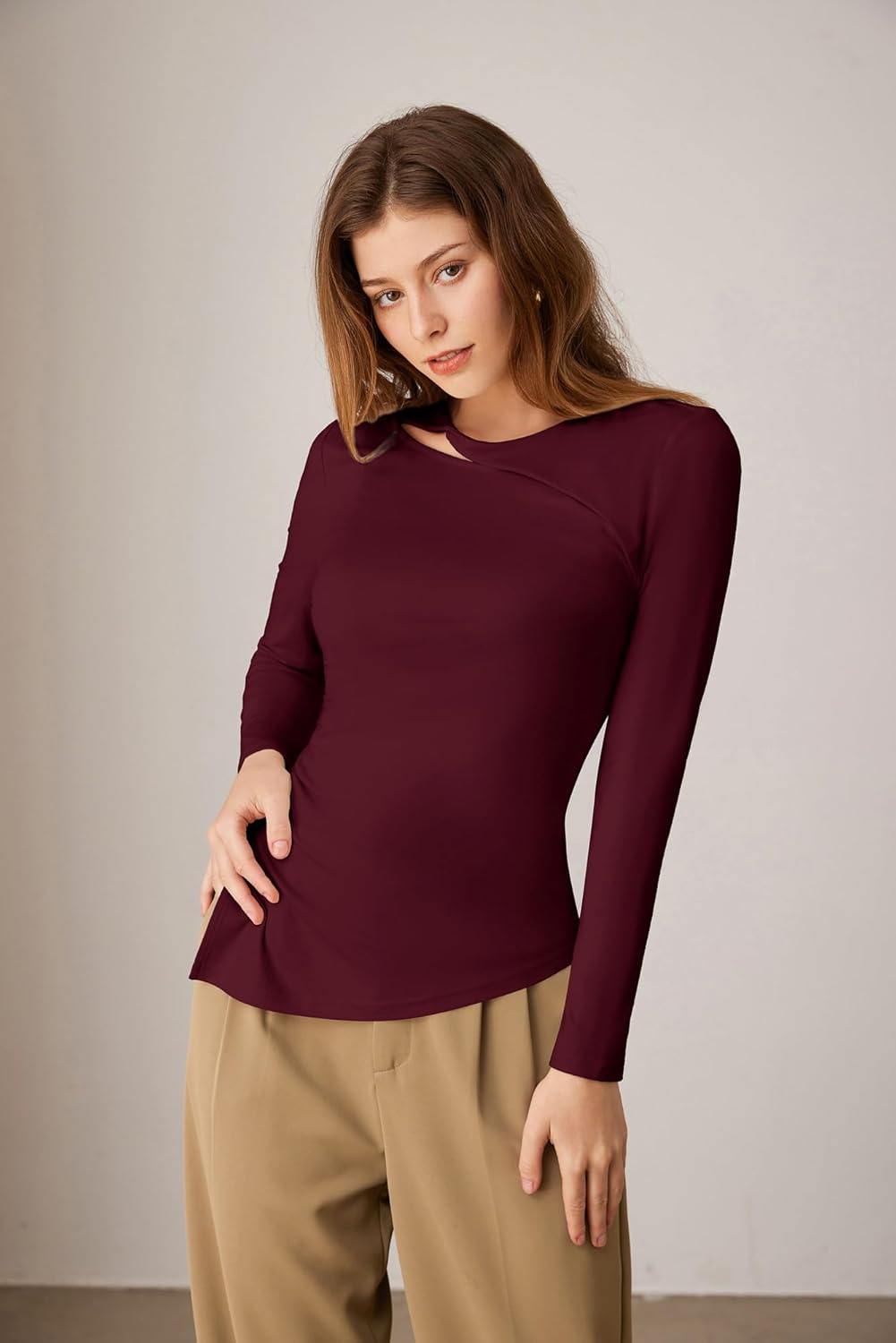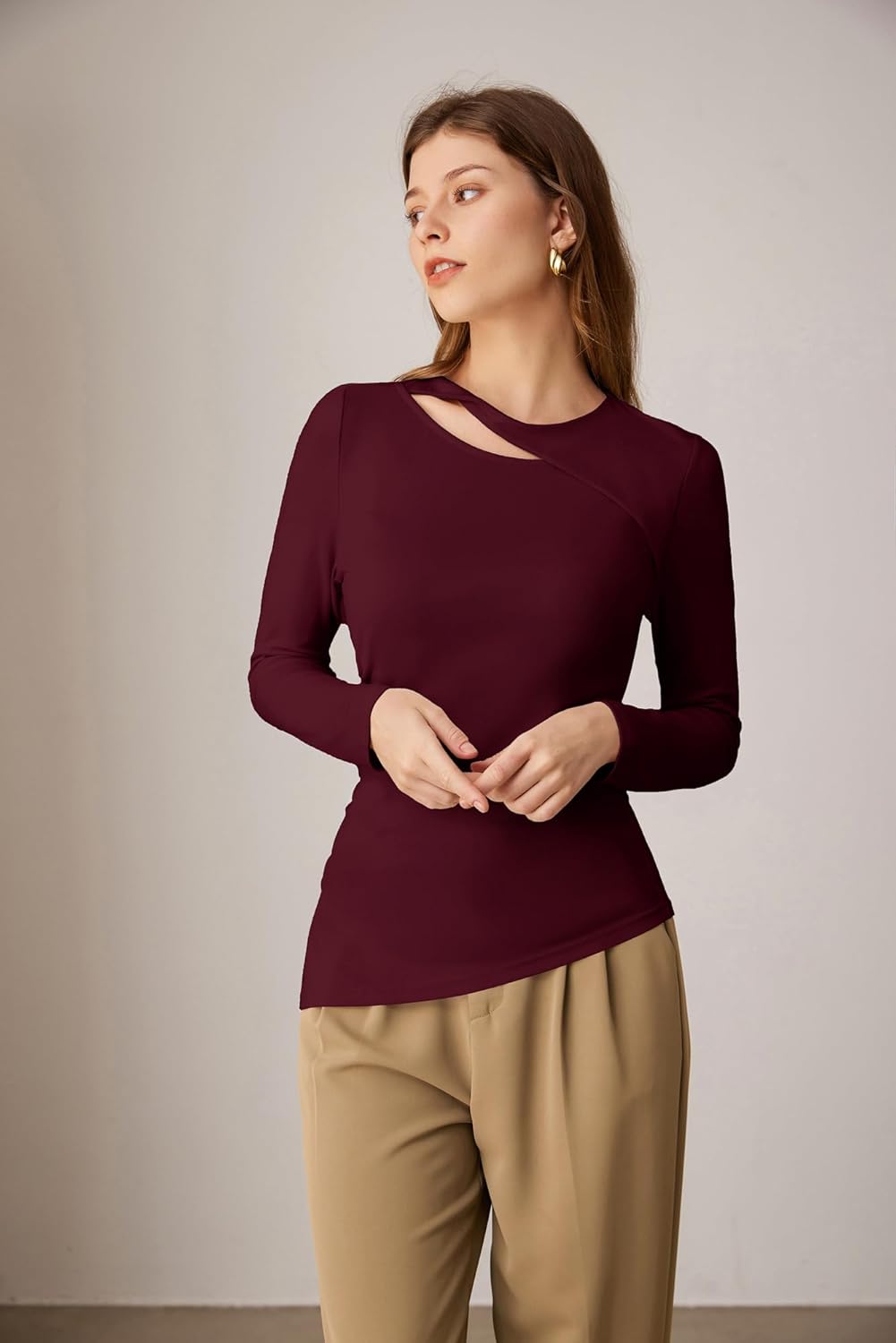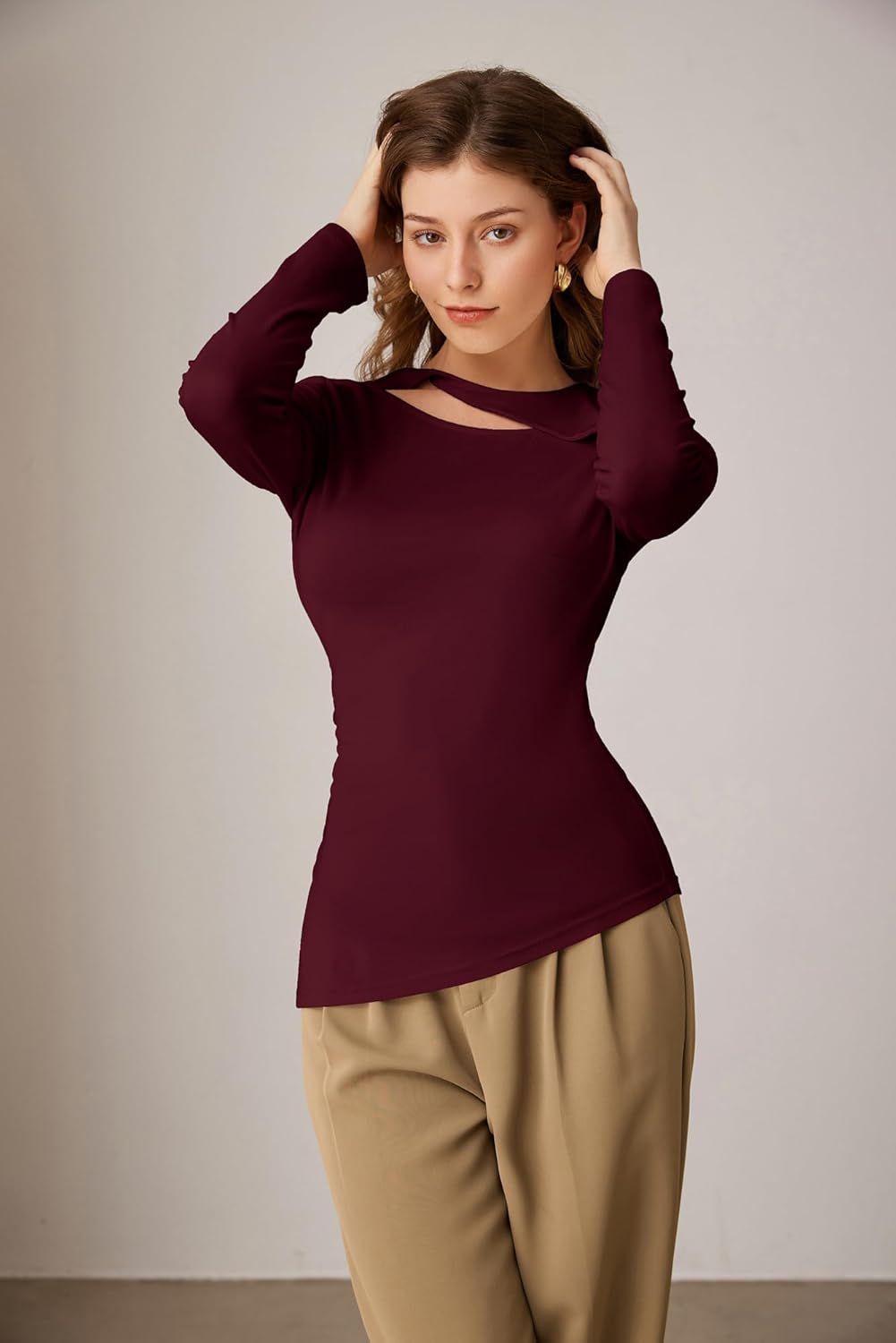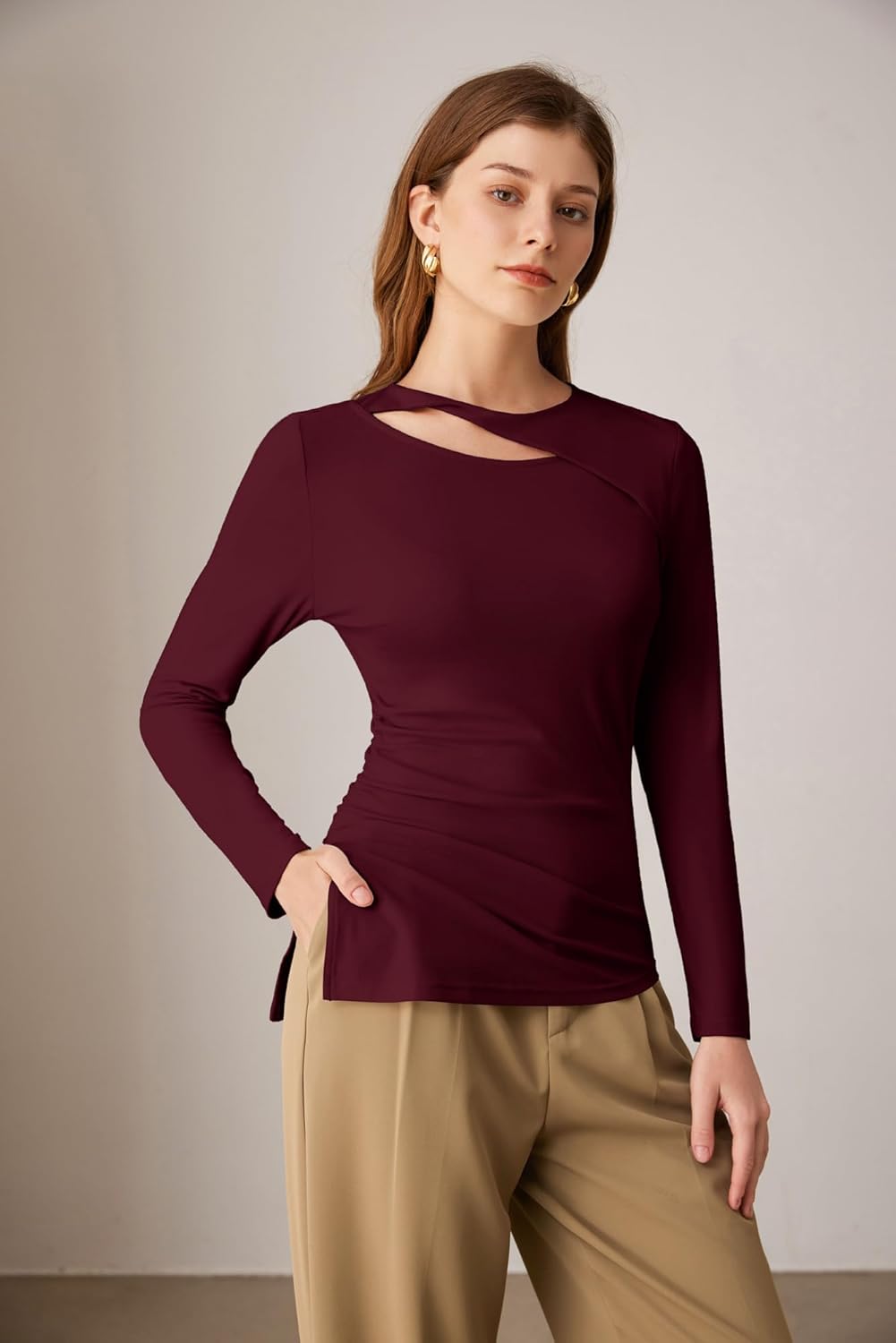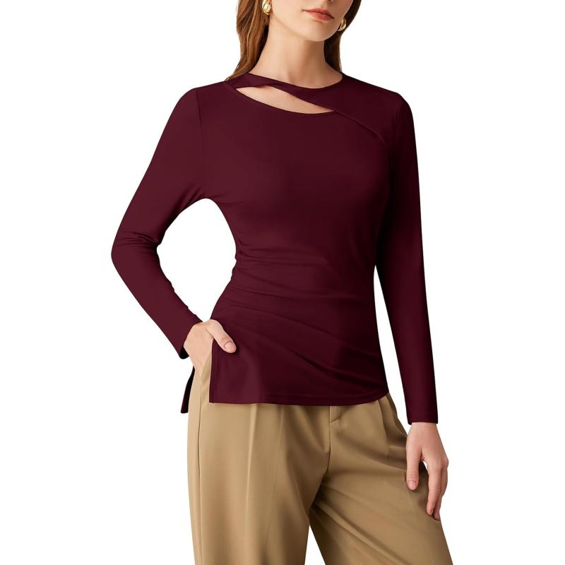 Be the first to review “GRACE KARIN Womens Crewneck Cutout Long Sleeve Tops Twist Fitted Ruched Slit Asymmetrical Hem T-Shirts Tees Fall Tunic Top(Wine Red)” Cancel reply