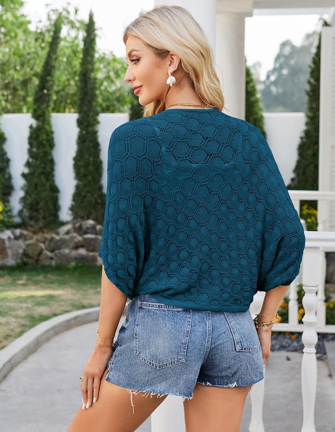 GRACE KARIN Womens Crochet Summer Cardigan Shrug 2025 Lightweight Open Front Hollow-out Batwing Cardigan Sweater Outwear(Dark Blue)