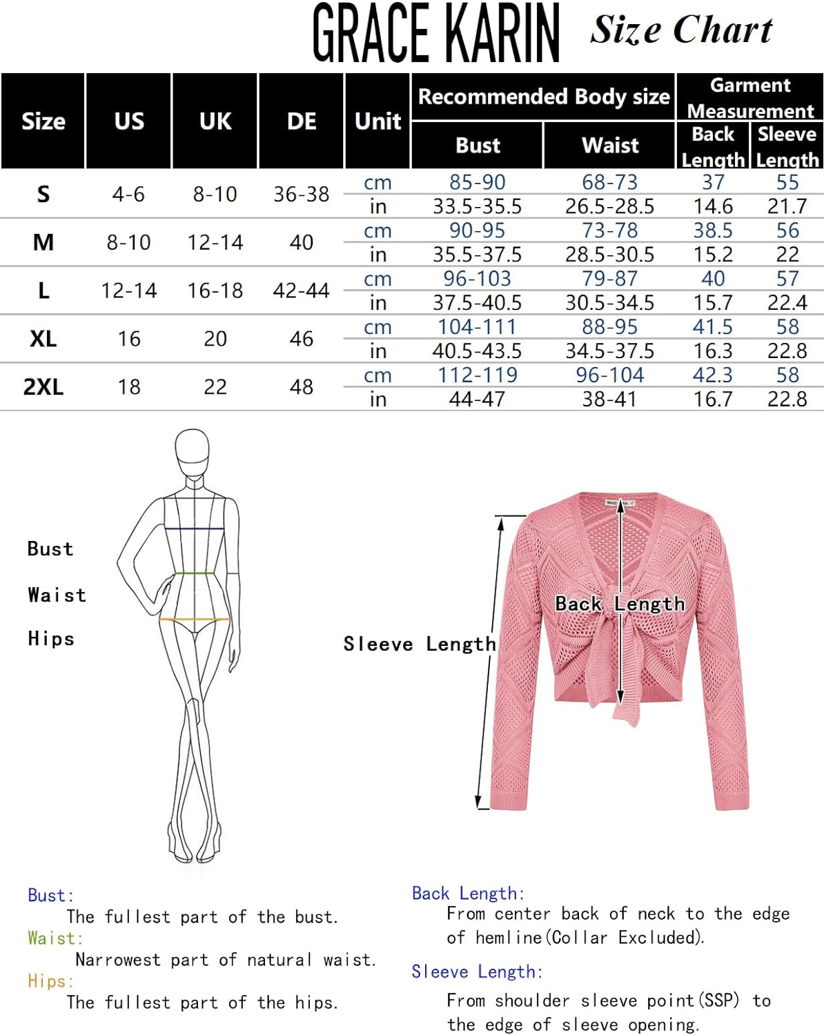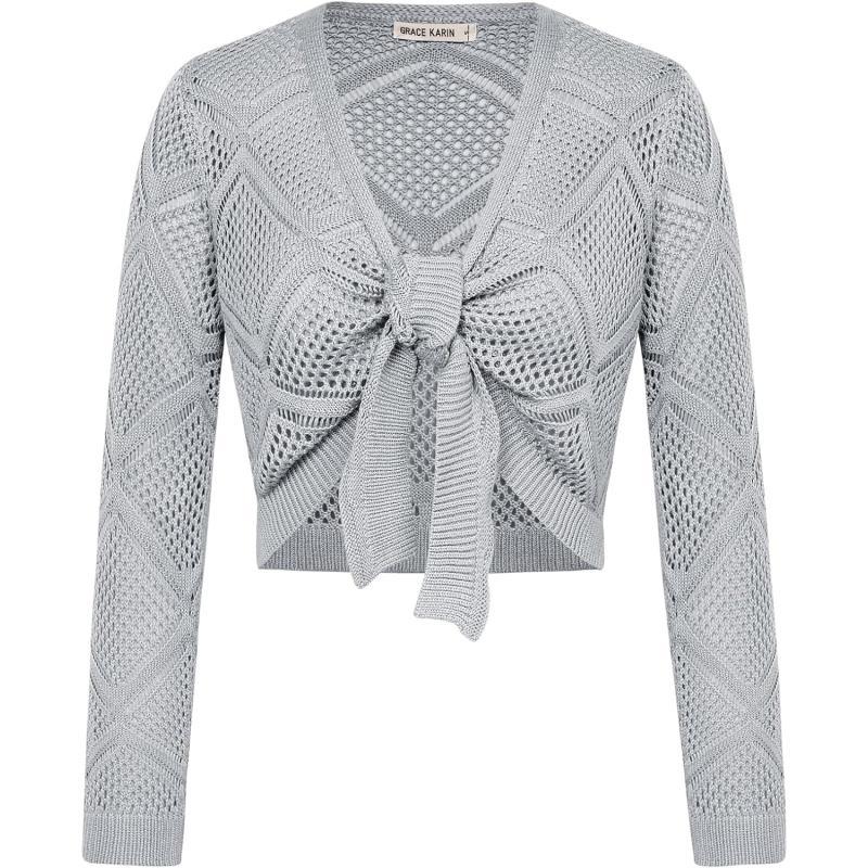 GRACE KARIN Women's Cropped Knit Cardigan Long Sleeve V Neck Crochet Cardigan Hollow Out Tie Front Lightweight Sweater Crop Tops