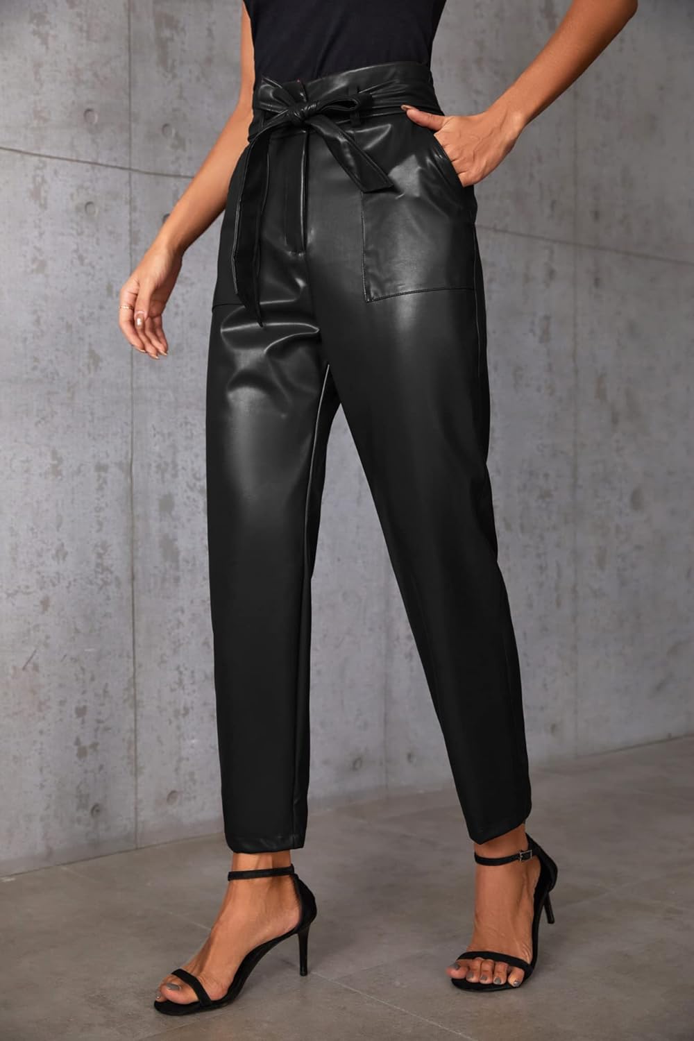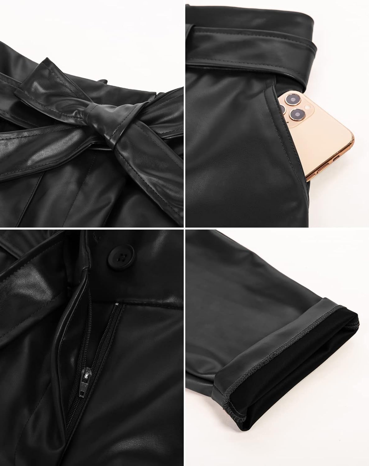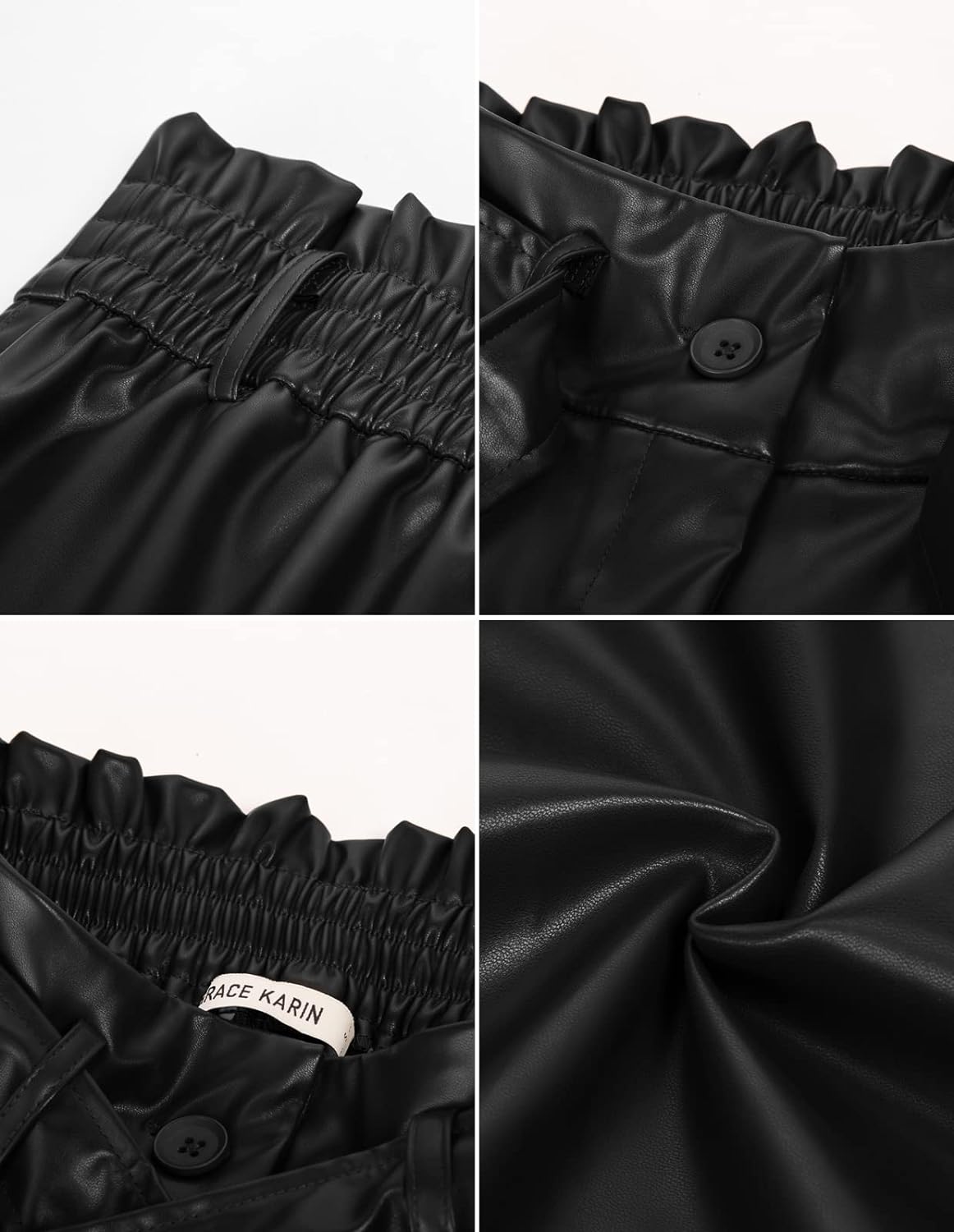 GRACE KARIN Women’s Cropped Paper Bag Waist Pants with Pockets(1758#black Pu)