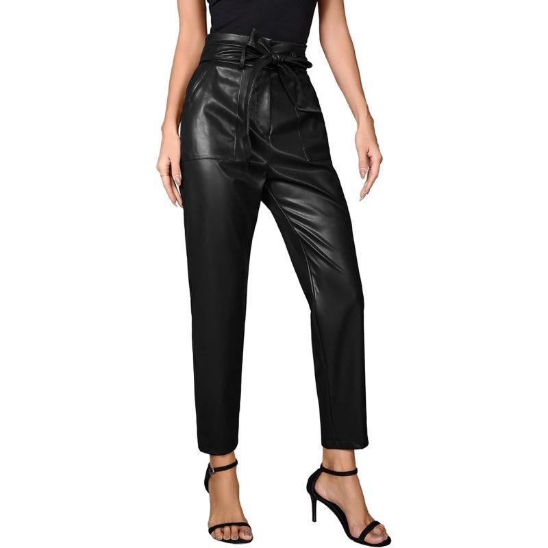 GRACE KARIN Women's Cropped Paper Bag Waist Pants with Pockets(1758#black Pu)