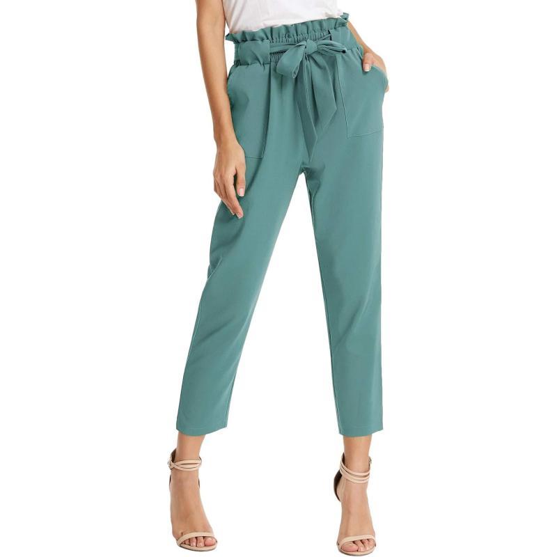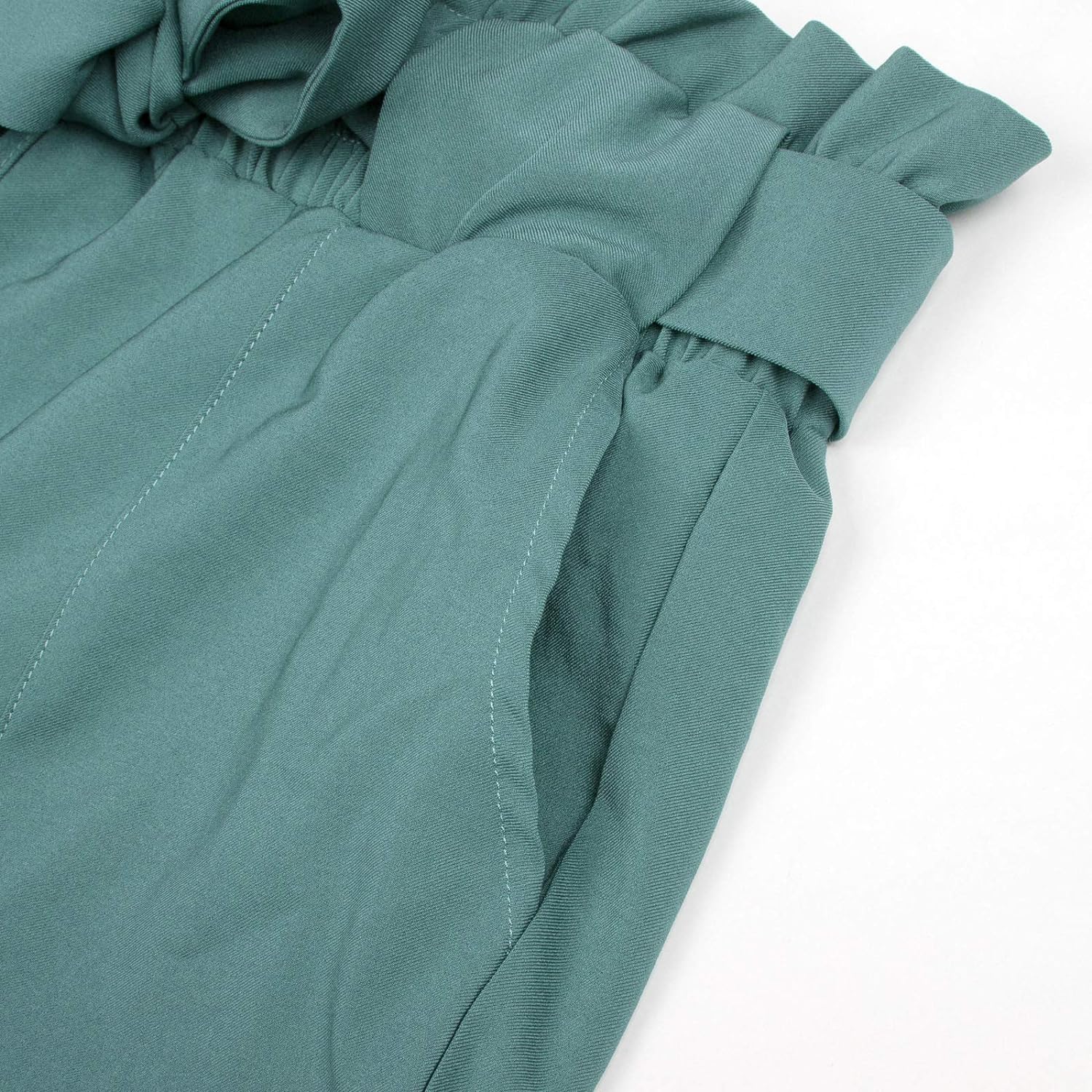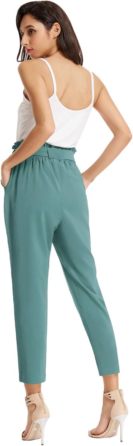 GRACE KARIN Womens Cropped Paper Bag Waist Pants with PocketsBluish Green