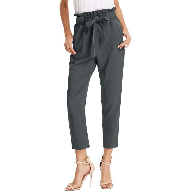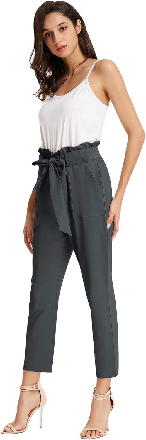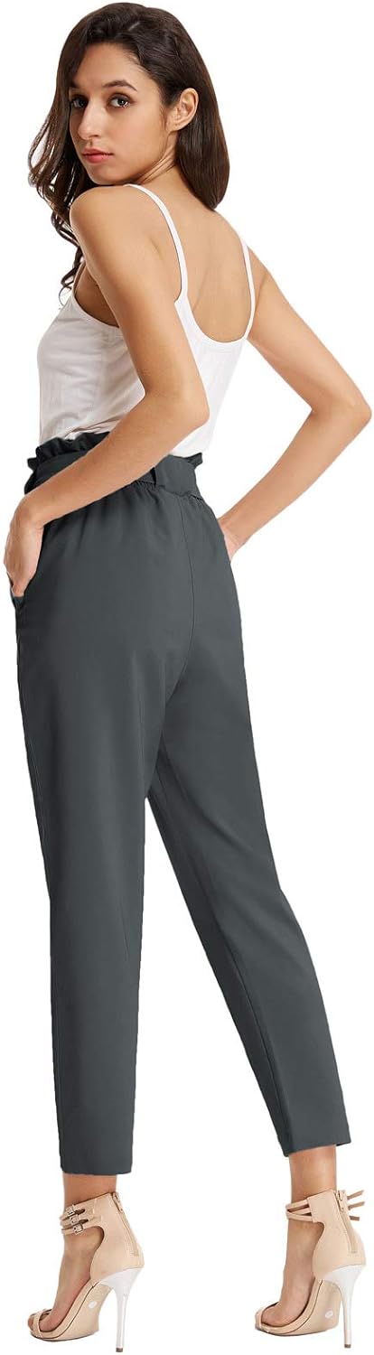 GRACE KARIN Womens Cropped Paper Bag Waist Pants with PocketsCharcoal Gray