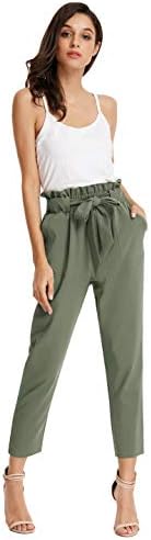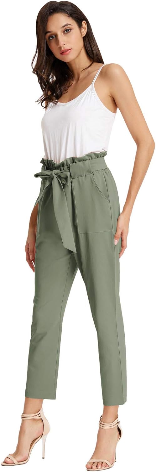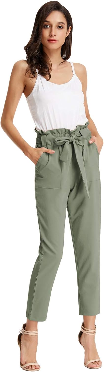 GRACE KARIN Womens Cropped Paper Bag Waist Pants with PocketsGray Green