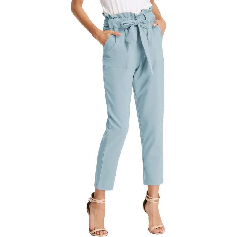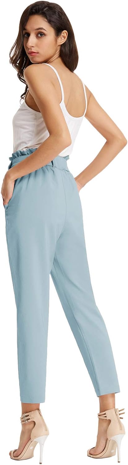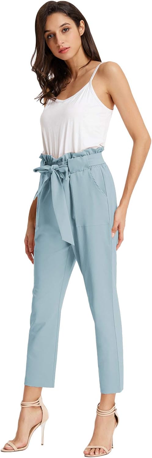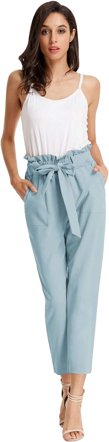 GRACE KARIN Womens Cropped Paper Bag Waist Pants with PocketsMedium Blue