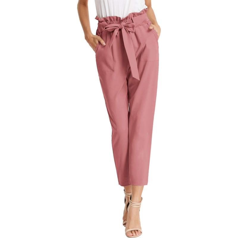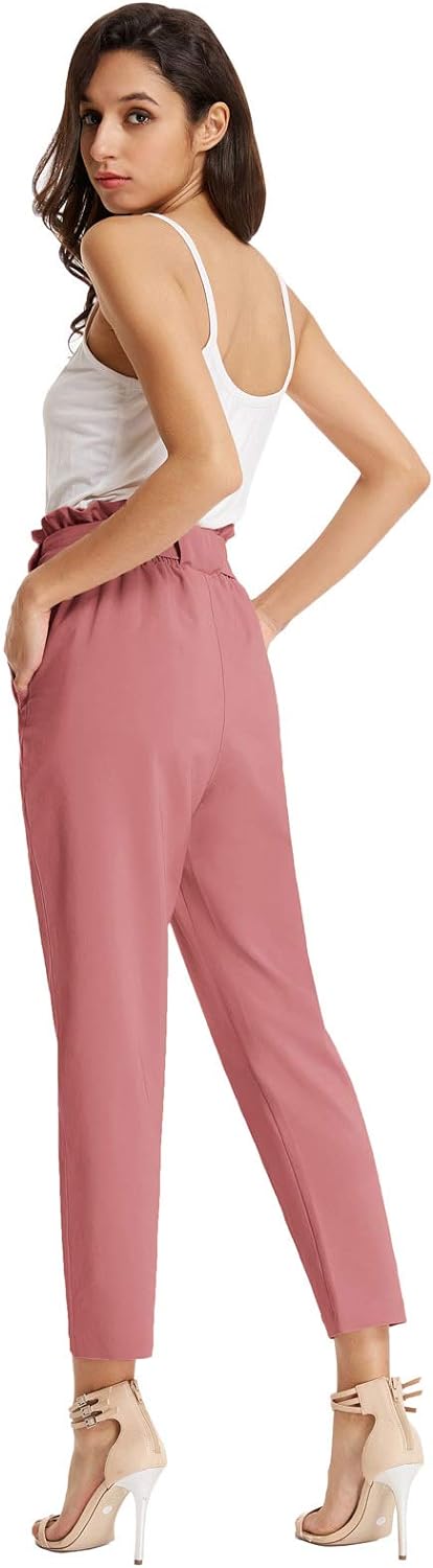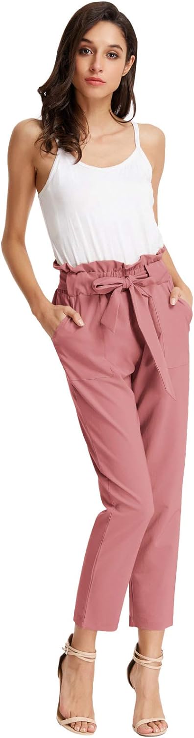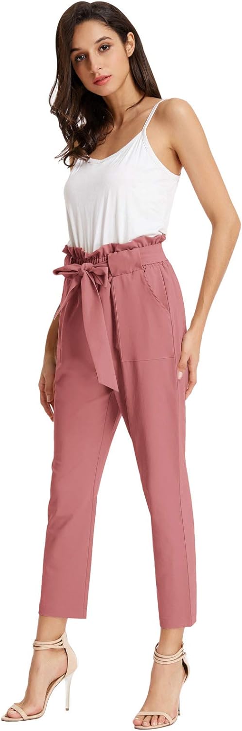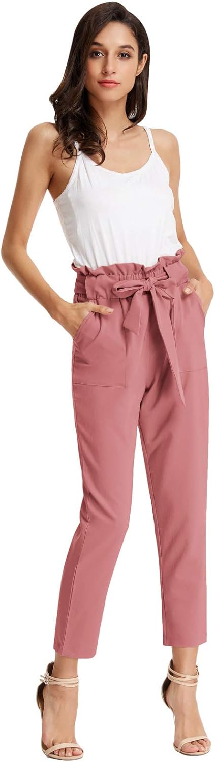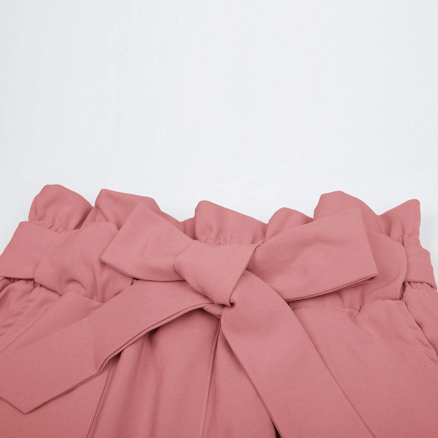 GRACE KARIN Womens Cropped Paper Bag Waist Pants with PocketsSalmon Pink
