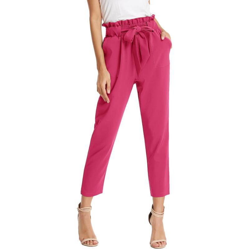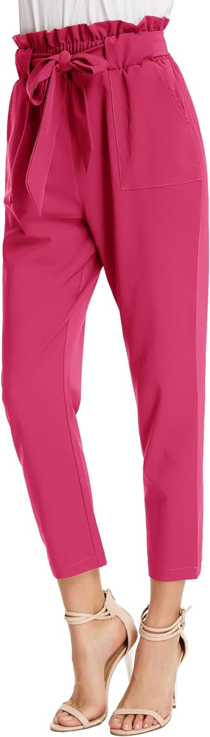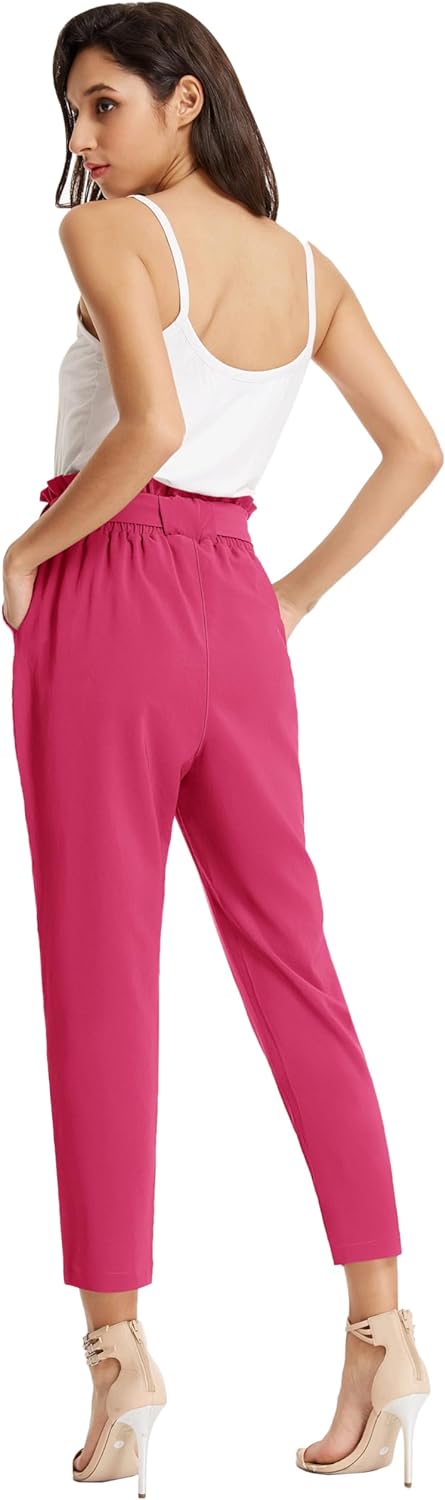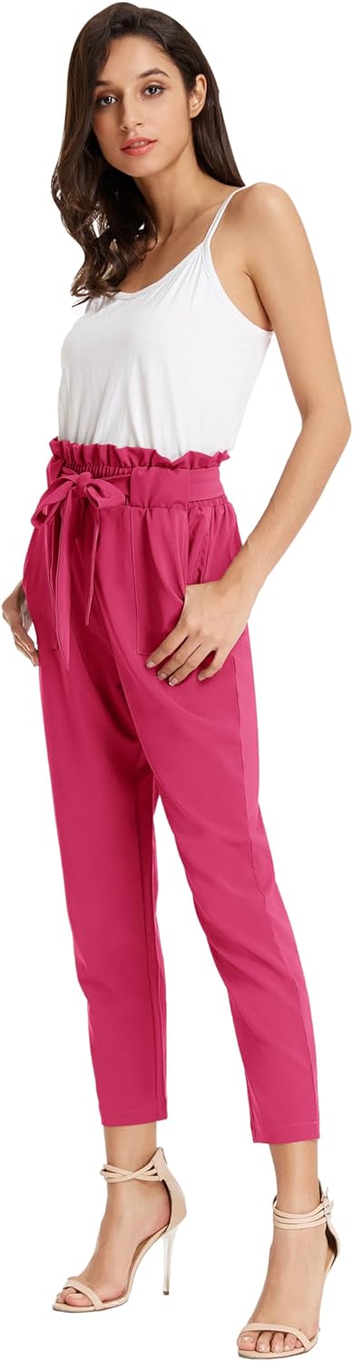 GRACE KARIN Womens Cropped Paper Bag Waist Pants with PocketsUpdatehot Pink
