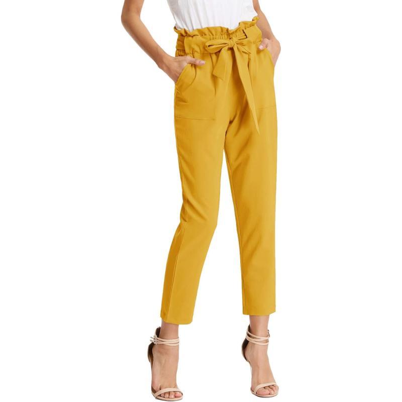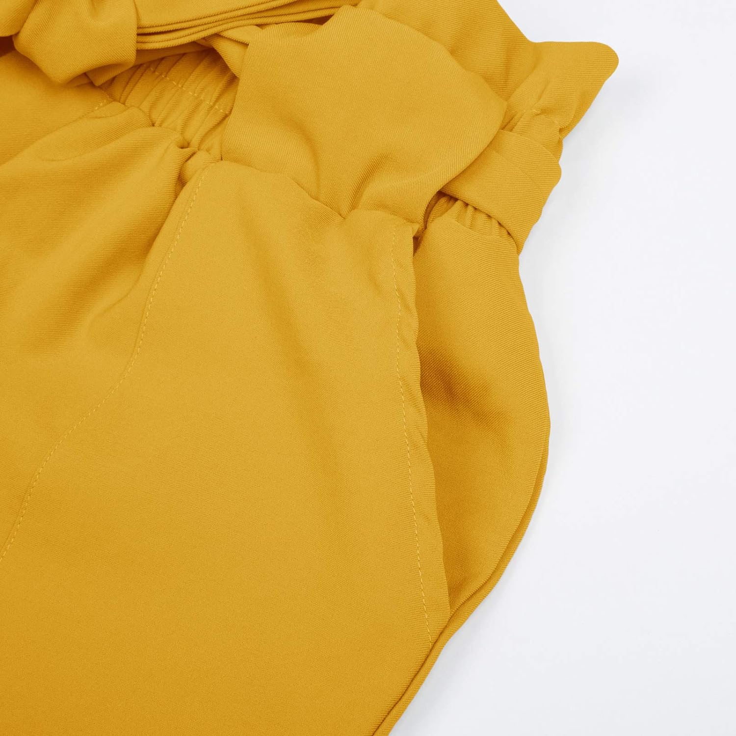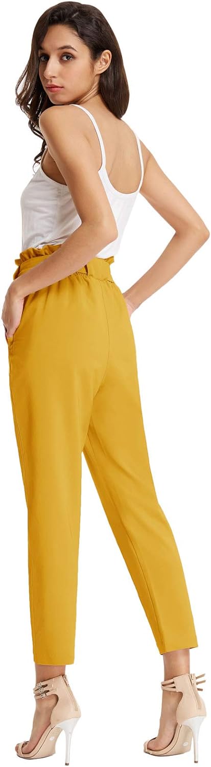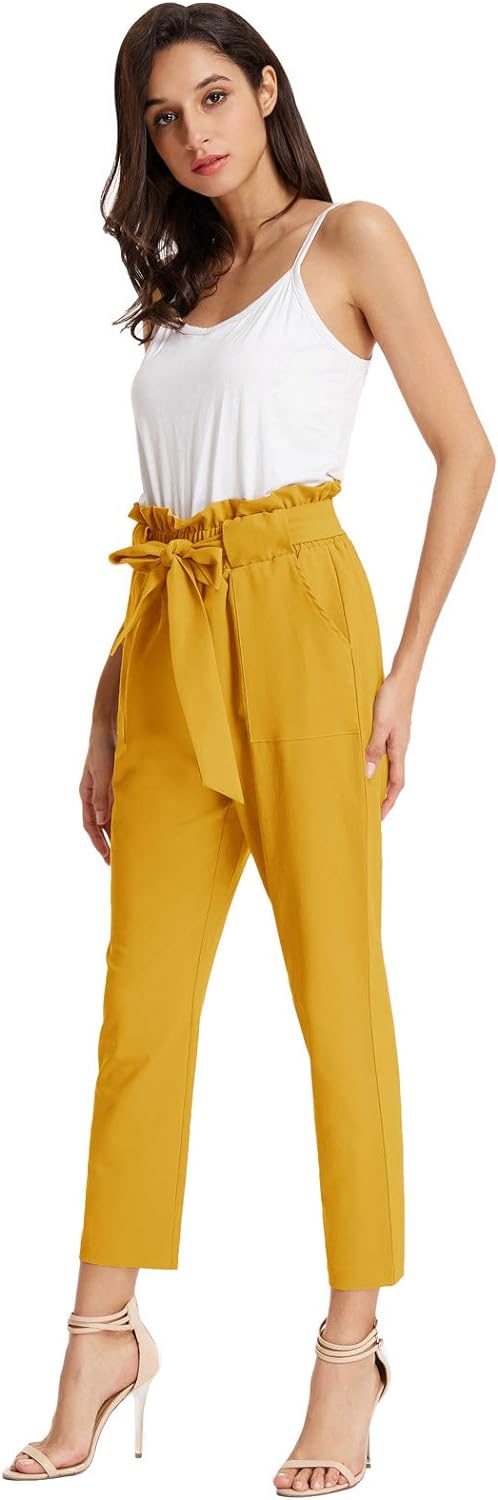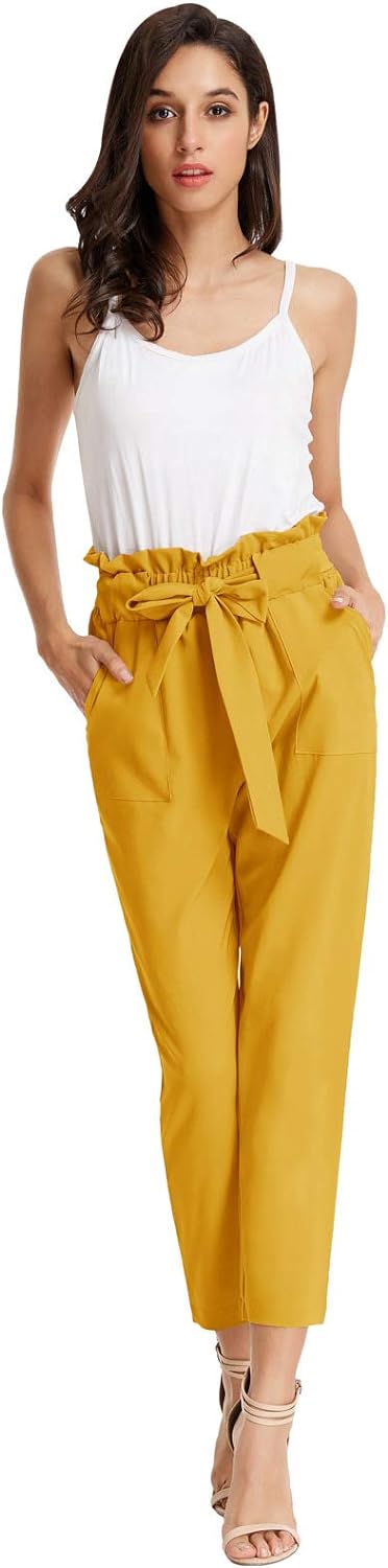 GRACE KARIN Womens Cropped Paper Bag Waist Pants with PocketsYellow