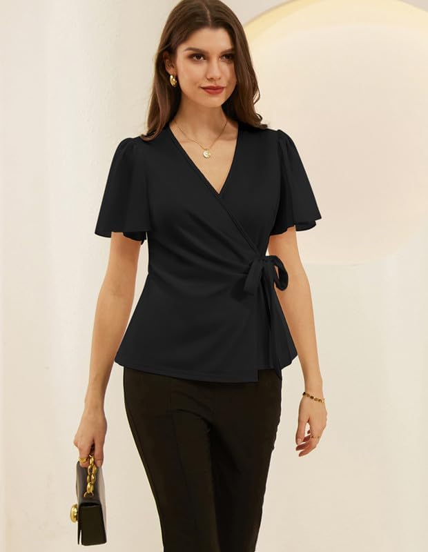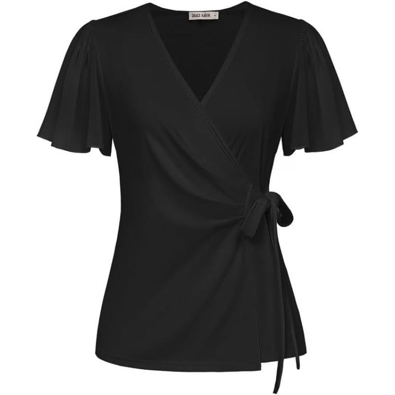 Be the first to review “GRACE KARIN Womens Dressy Tops Flowing Chiffon Short Sleeve Blouses 2024 Summer Blouses V Neck Wrap Business Work Shirts Tops(Black)” Cancel reply