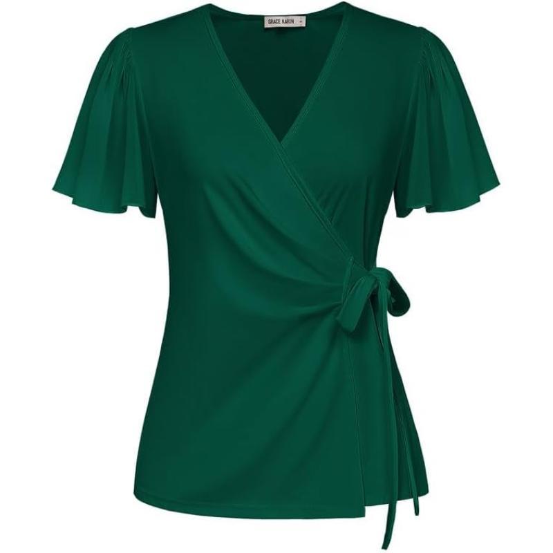 Be the first to review “GRACE KARIN Womens Dressy Tops Flowing Chiffon Short Sleeve Blouses 2024 Summer Blouses V Neck Wrap Business Work Shirts Tops(Dark Green)” Cancel reply
