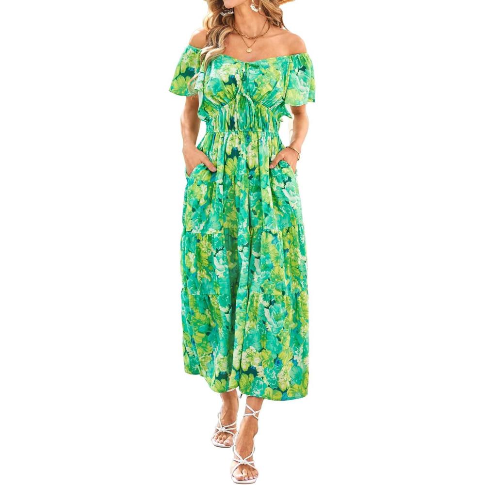 Be the first to review “GRACE KARIN Womens Elegant Floral Summer V-Neck Ruffle Sleeve Empire Waist A-Line Casual Maxi Tiered Dress with Pockets(Green Flower)” Cancel reply