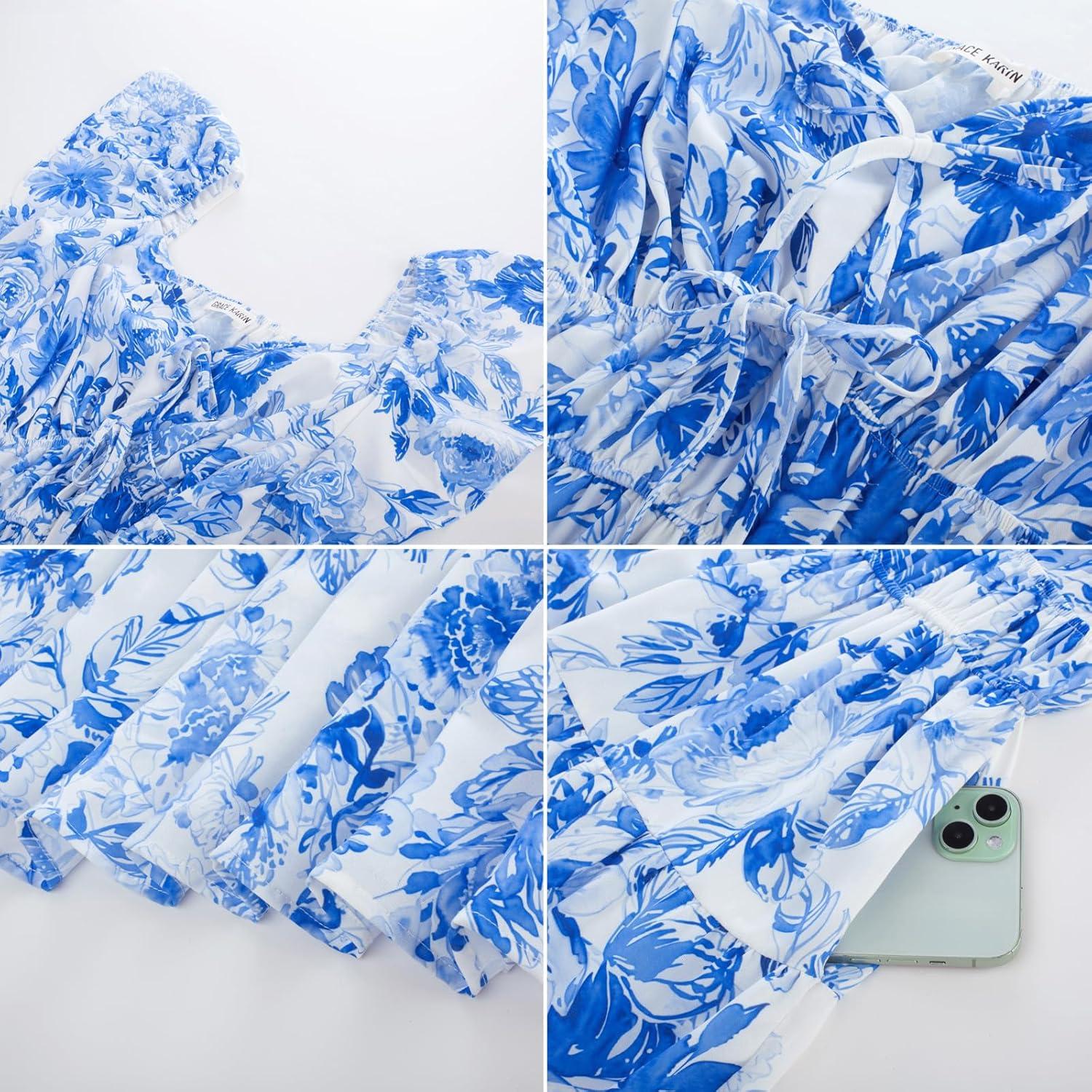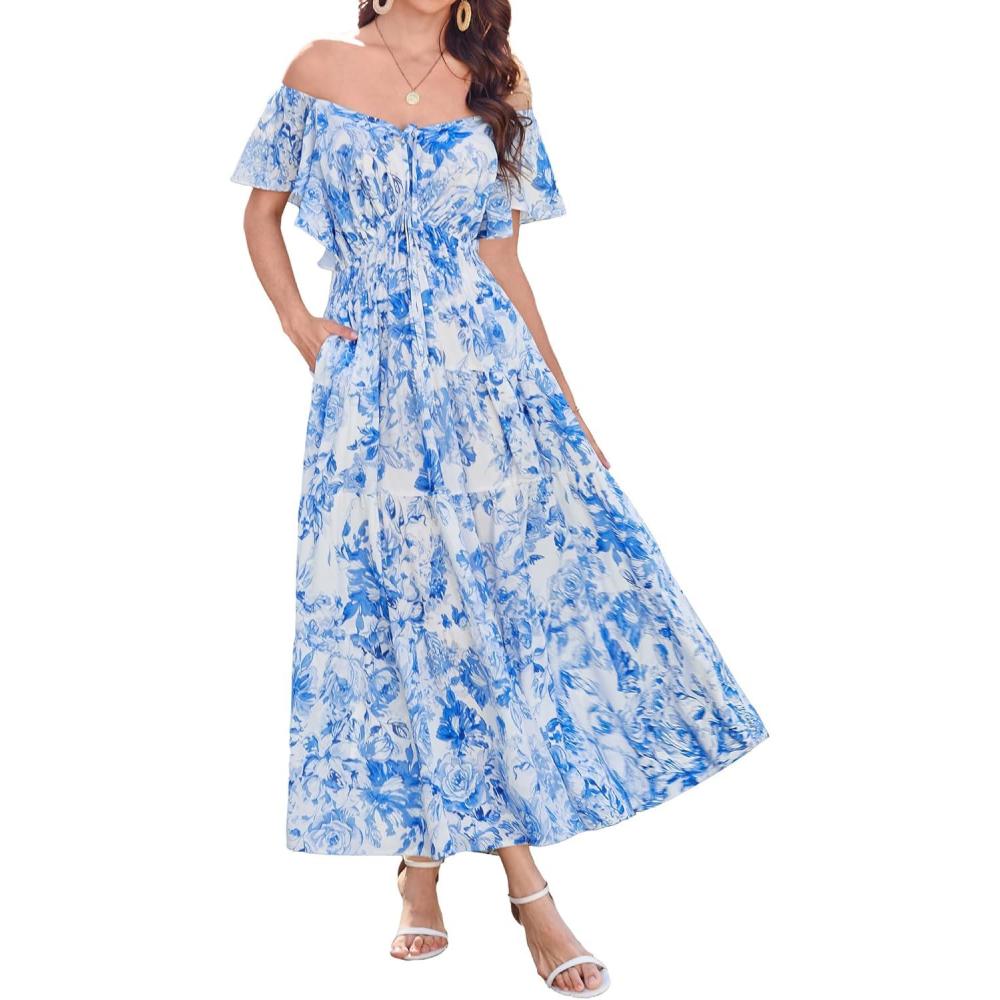 Our holiday sale features the best deals on GRACE KARIN Womens Elegant Floral Summer V-Neck Ruffle Sleeve Empire Waist A-Line Casual Maxi Tiered Dress with Pockets(White Blue Flower) and accessories. Shop now and save!