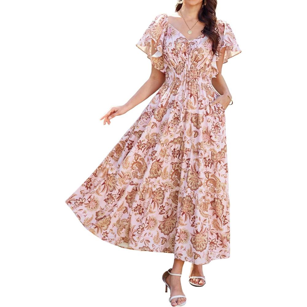 Be the first to review “GRACE KARIN Womens Elegant Floral Summer V-Neck Ruffle Sleeve Empire Waist A-Line Casual Maxi Tiered Dress with Pockets(White Yellow Flower)” Cancel reply