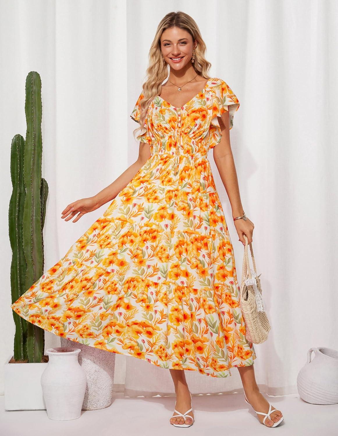 Don’t miss out on our limited-time offer: buy GRACE KARIN Womens Elegant Floral Summer V-Neck Ruffle Sleeve Empire Waist A-Line Casual Maxi Tiered Dress with Pockets(Yellow Green), get {accessory} free!