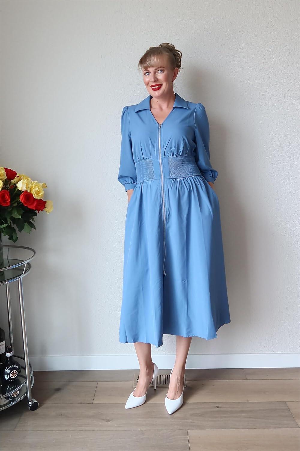 imageGRACE KARIN Womens Fall Casual Dress 2025 Collared V Neck 34 Sleeve Zipper Front Midi Work Dress with PocketsGray Blue