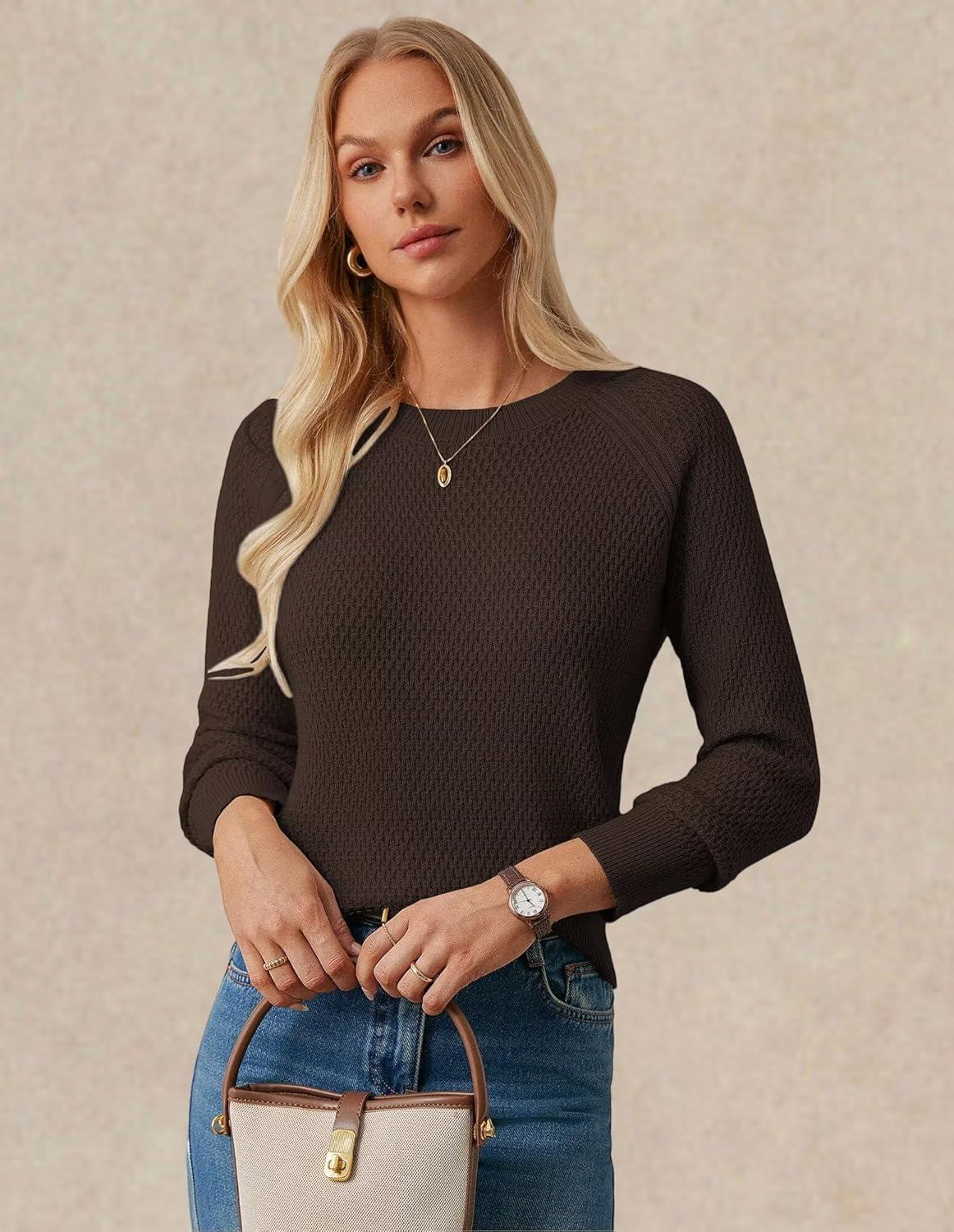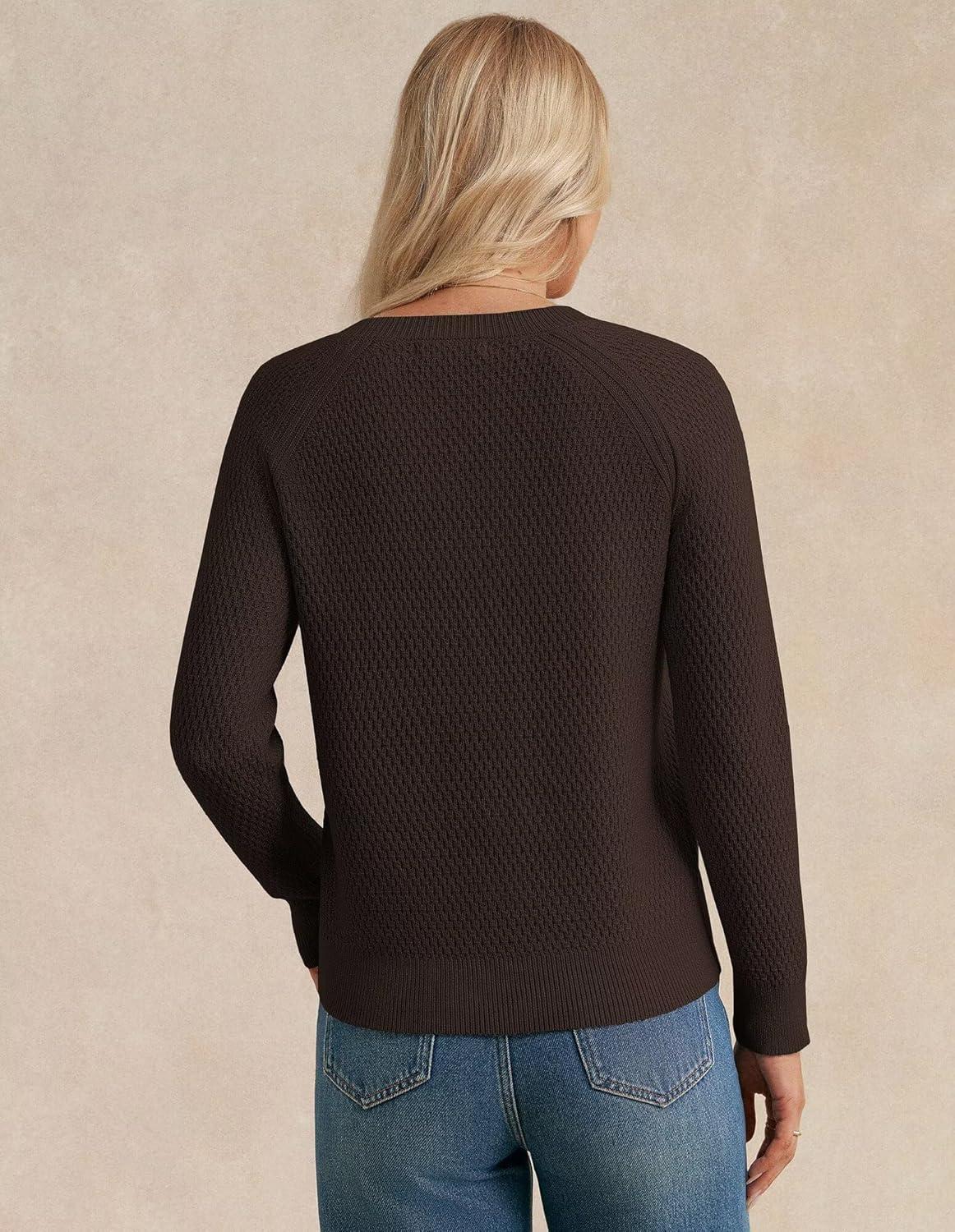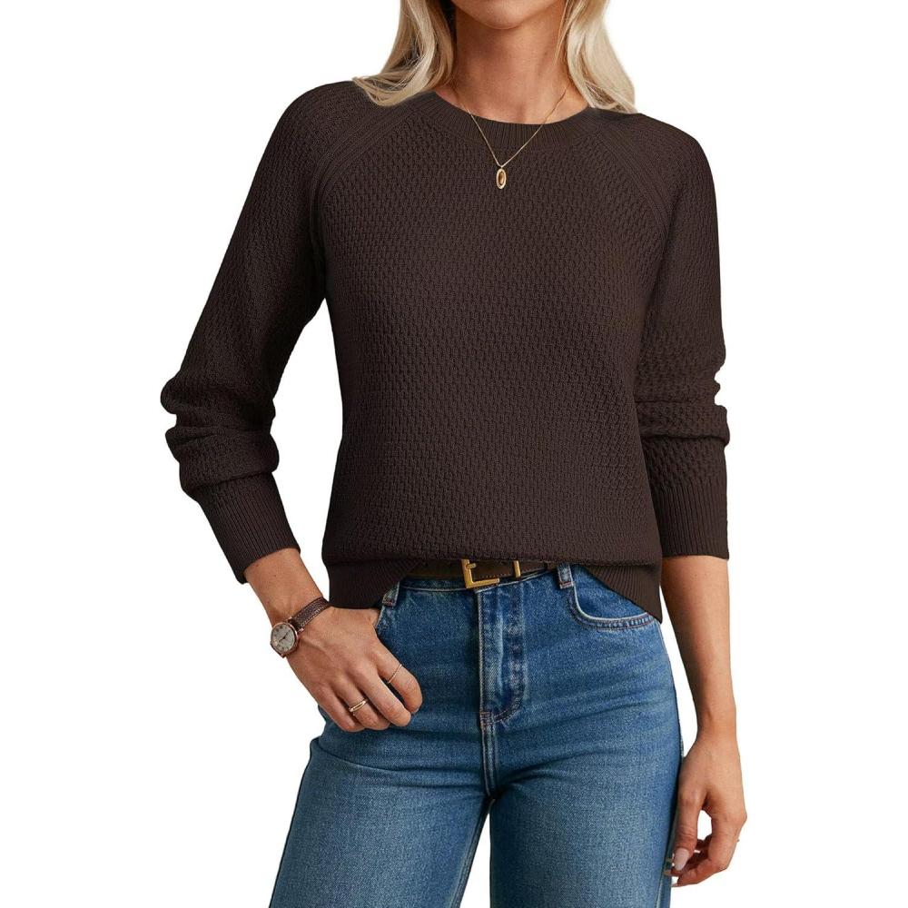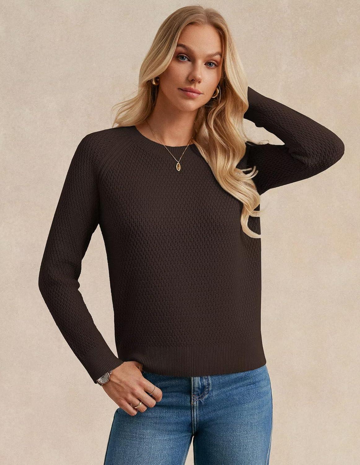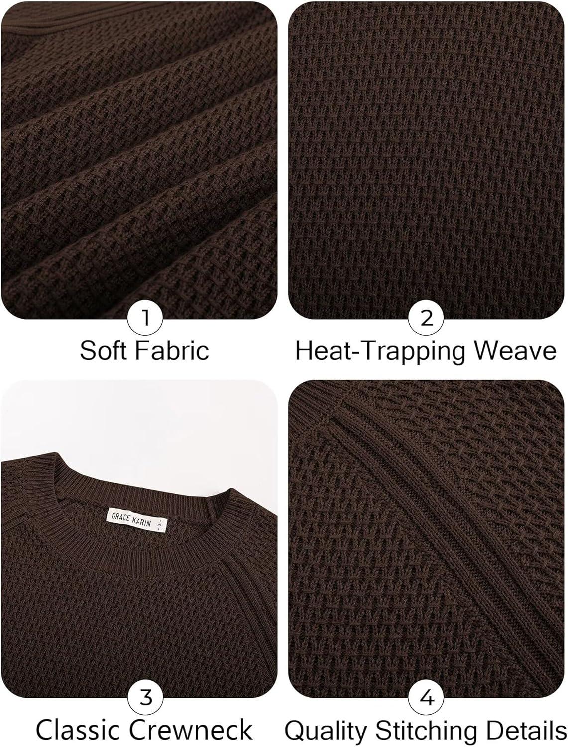 GRACE KARIN Women's Fall Knit Sweater Top, Long Sleeve Merino Wool Blend Pullover, Casual Crewneck Waffle Clothes 2025(Deep Brown)