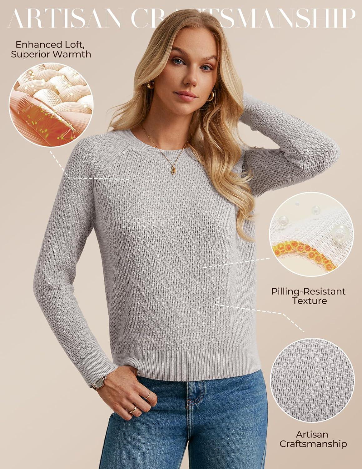 GRACE KARIN Women’s Fall Knit Sweater Top, Long Sleeve Merino Wool Blend Pullover, Casual Crewneck Waffle Clothes 2025(Grey)