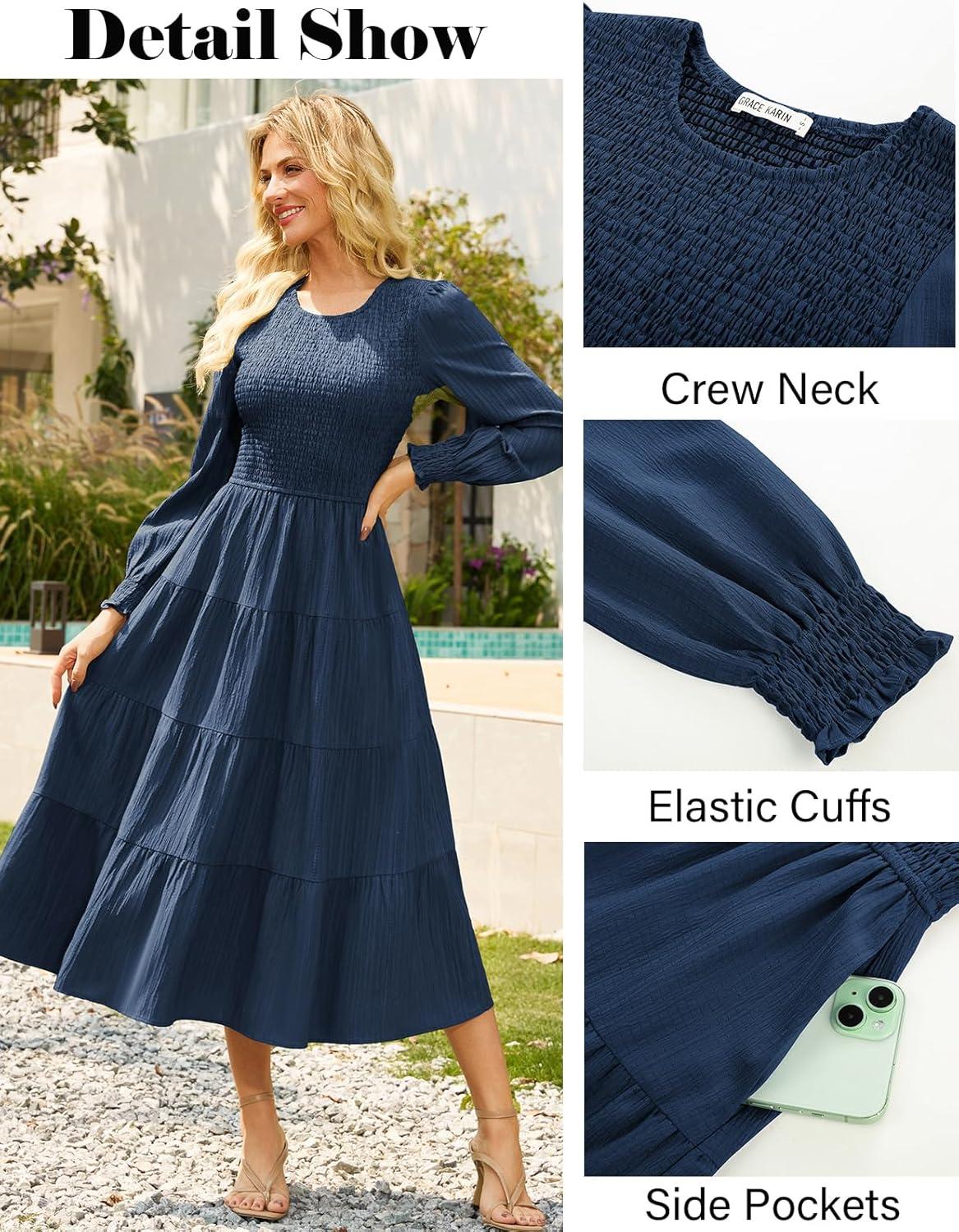Get up to 60% off on GRACE KARIN Women’s Fall Long Sleeve Dresses, 2025 Wedding Guest Midi Dress, Smocked A Line Flowy Dresses with Pockets(Dark Blue) styles during our winter sale event.