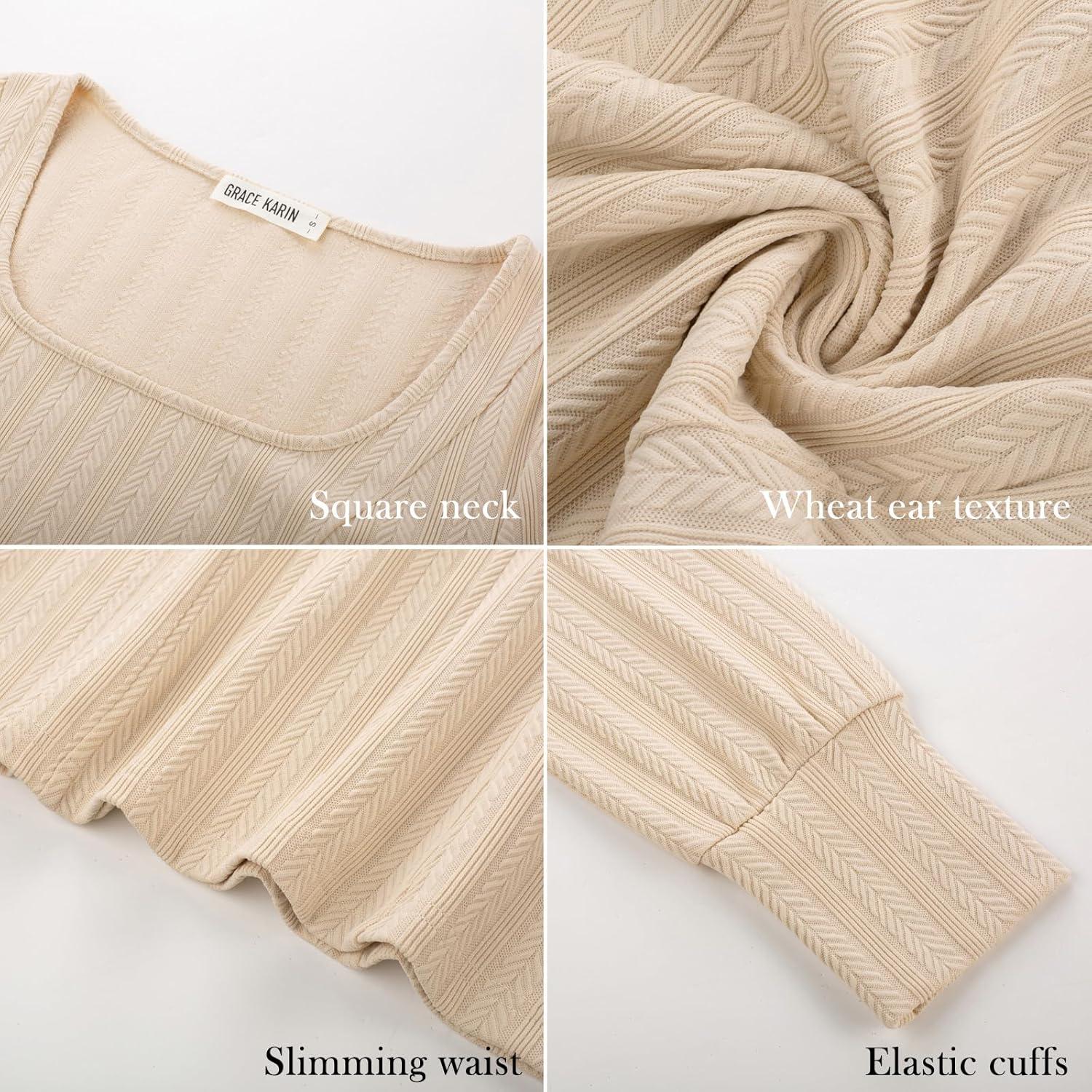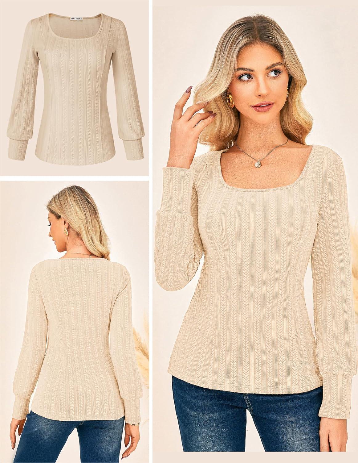 GRACE KARIN Womens Fall Long Sleeve Trendy Tops 2025 Square Neck Ribbed Casual Shirts Cozy Basic Sweater(Apricot)