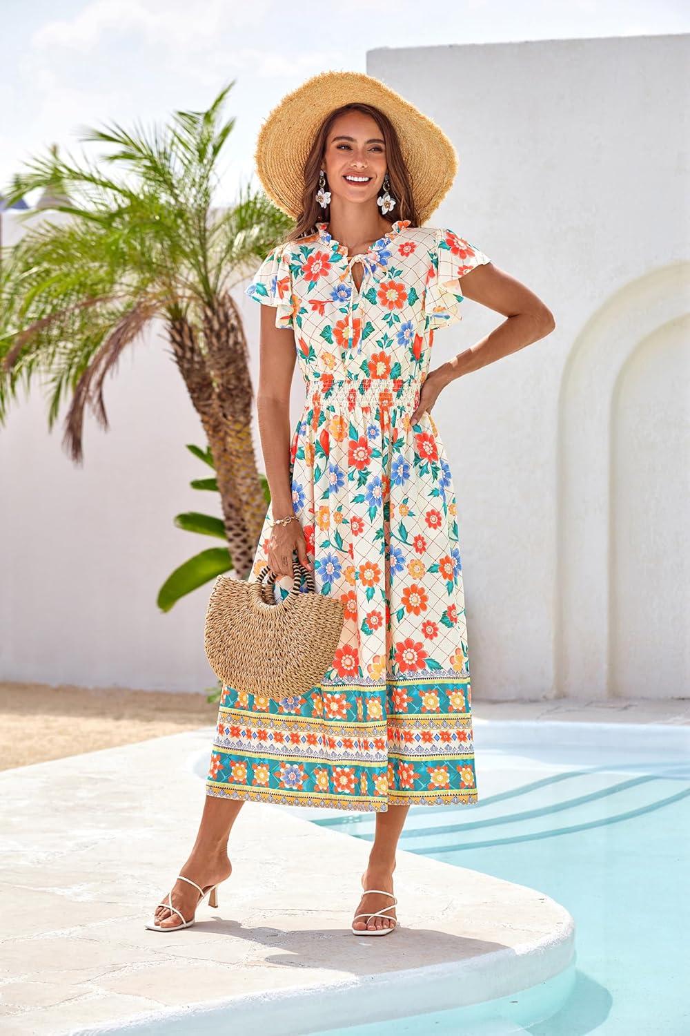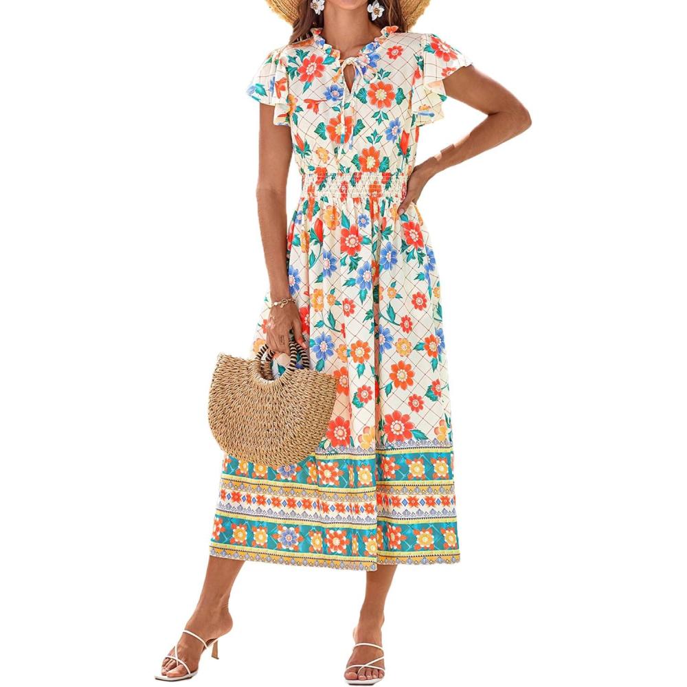 Get a free gift with your purchase of GRACE KARIN Women’s Floral Boho Dress Hawaiian Dresse Short Sleeve V Neck Summer Beach Wedding Guest Swing Maxi Sundress(Apricot Green Flowers). Limited quantities available!