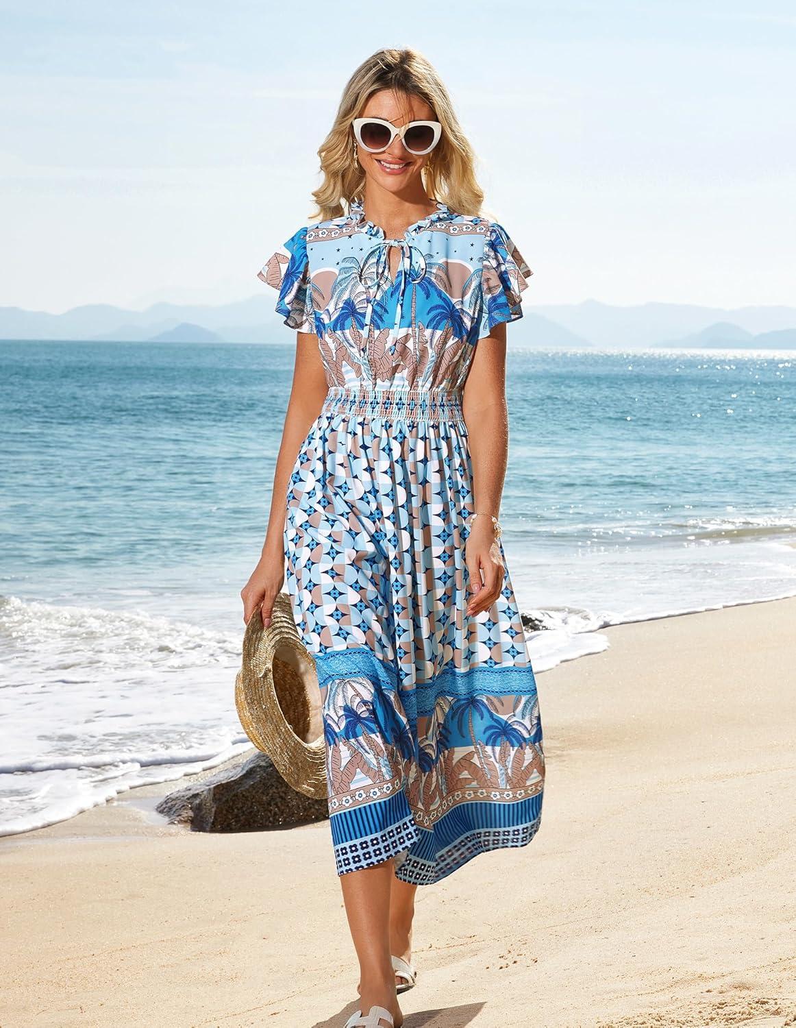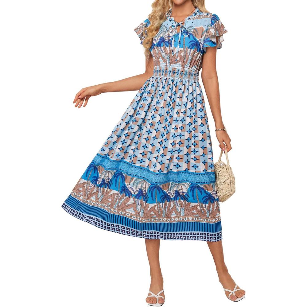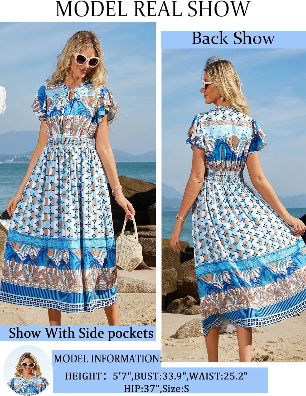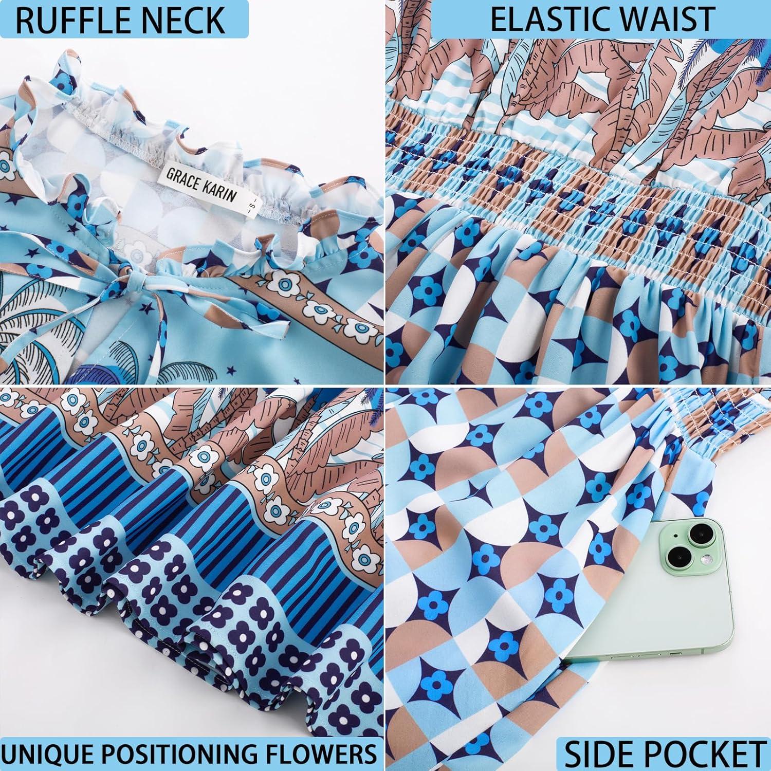 Be the first to review “GRACE KARIN Women’s Floral Boho Dress Hawaiian Dresse Short Sleeve V Neck Summer Beach Wedding Guest Swing Maxi Sundress(Blue Coconut)” Cancel reply