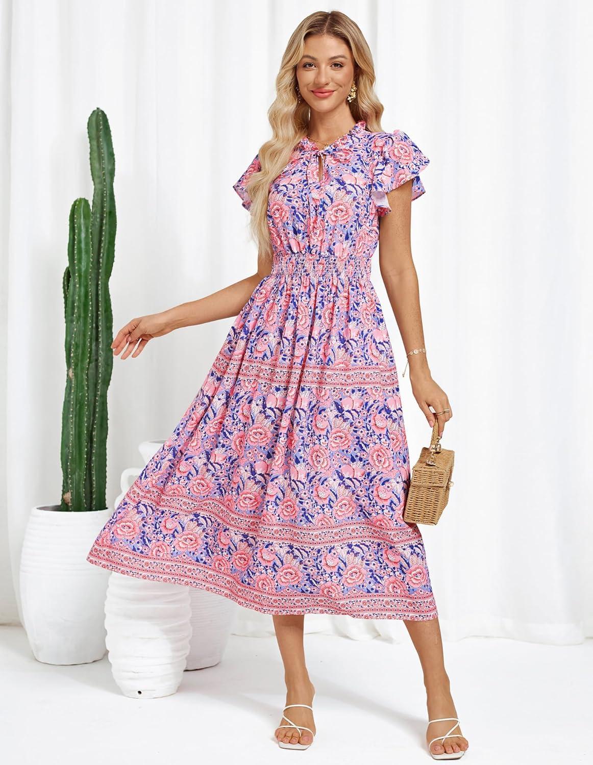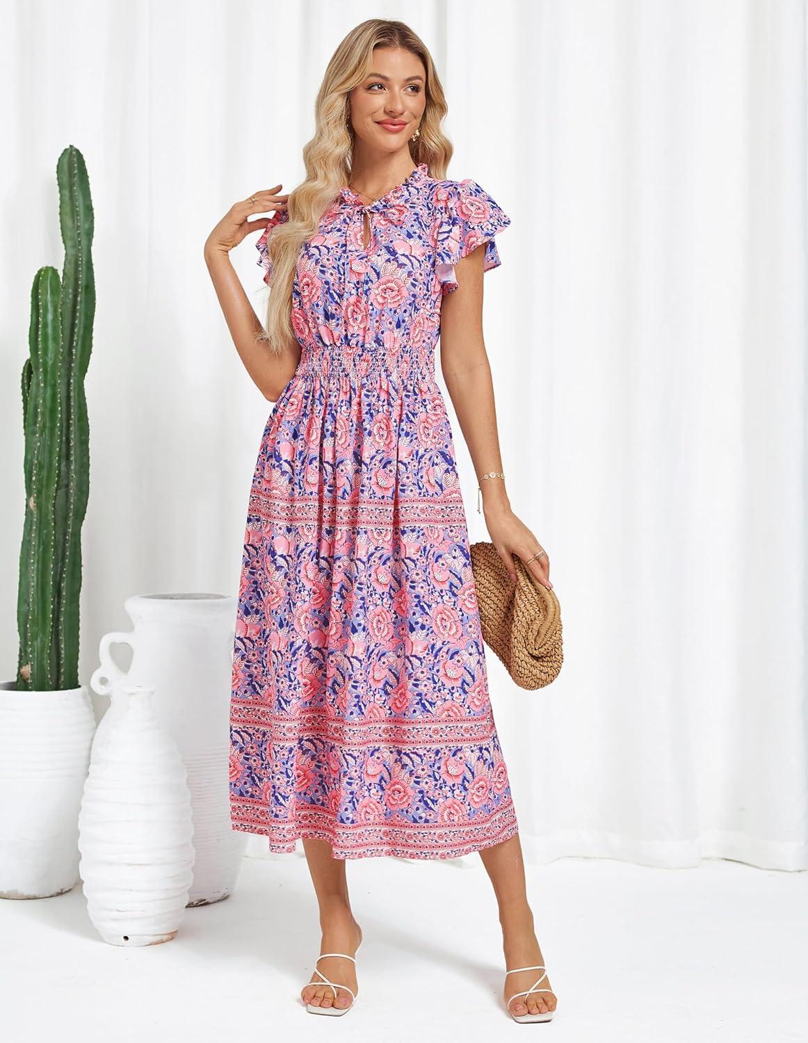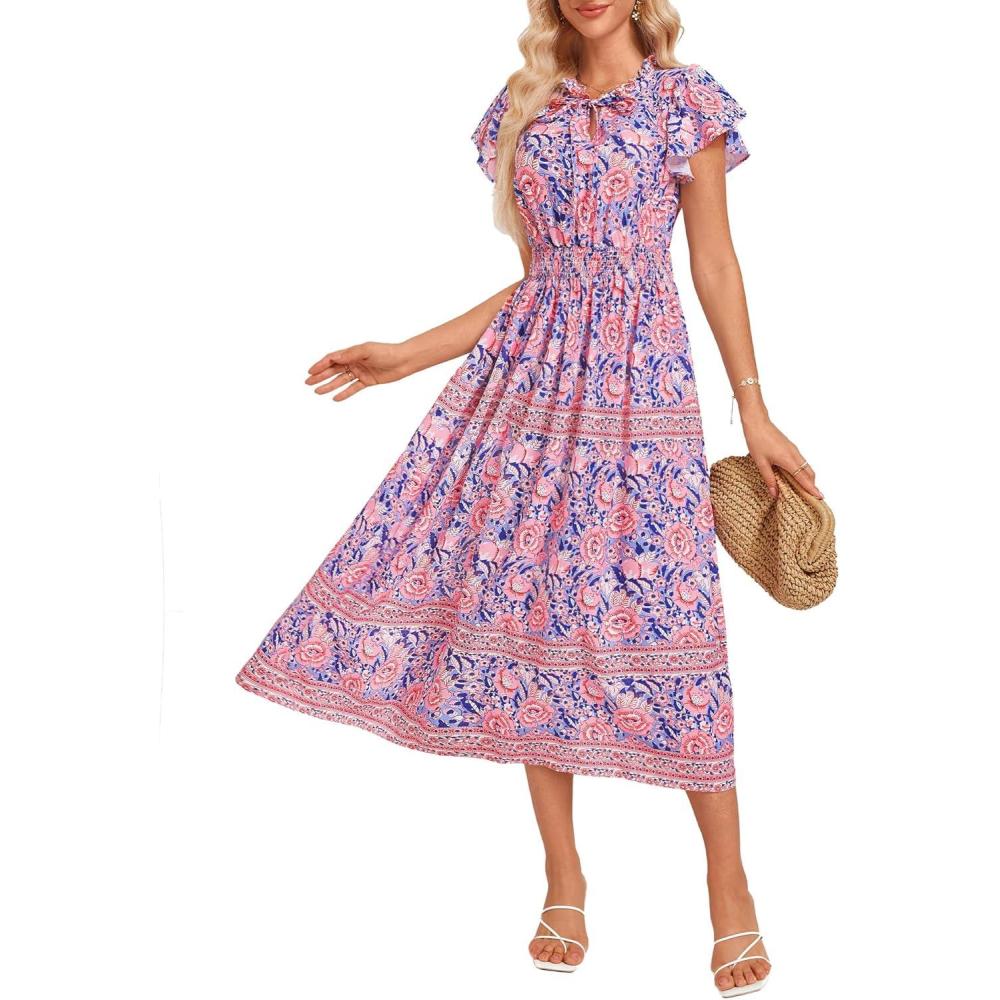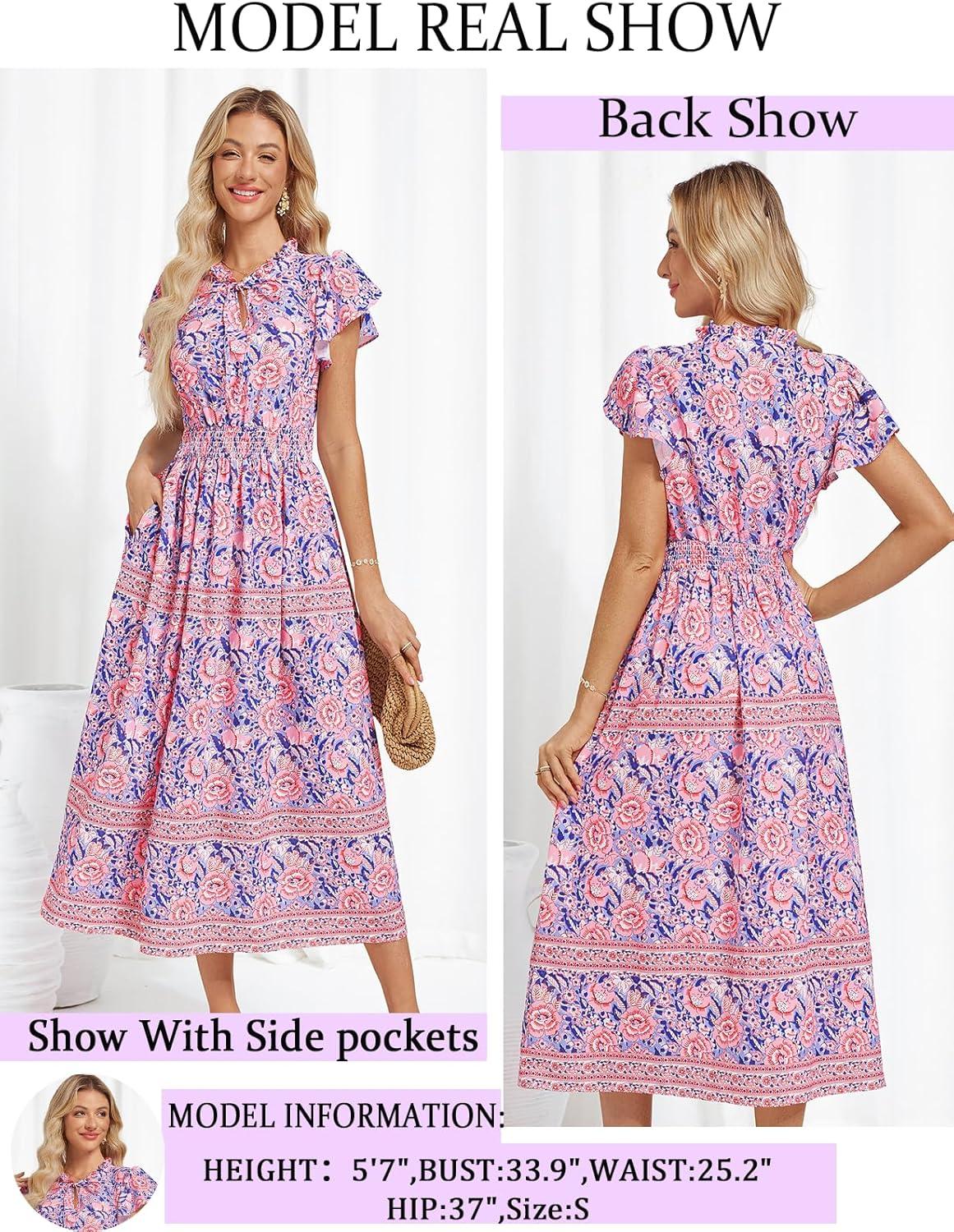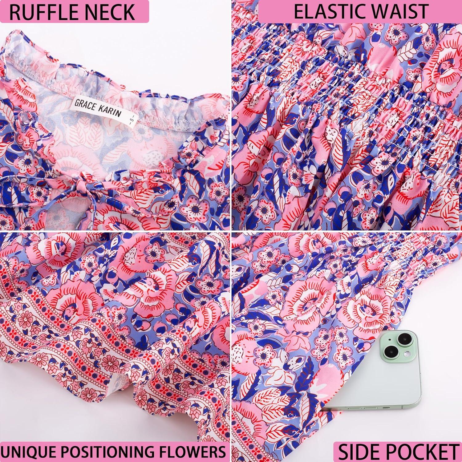 Be the first to review “GRACE KARIN Women’s Floral Boho Dress Hawaiian Dresse Short Sleeve V Neck Summer Beach Wedding Guest Swing Maxi Sundress(Blue With Pink Flowers)” Cancel reply