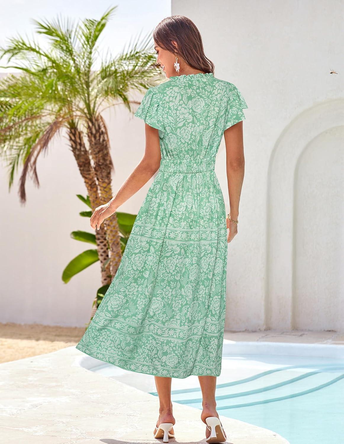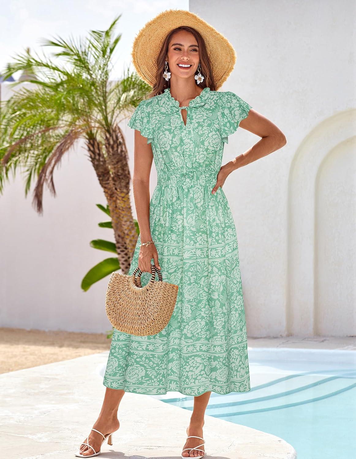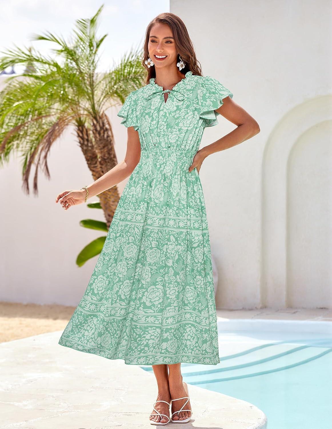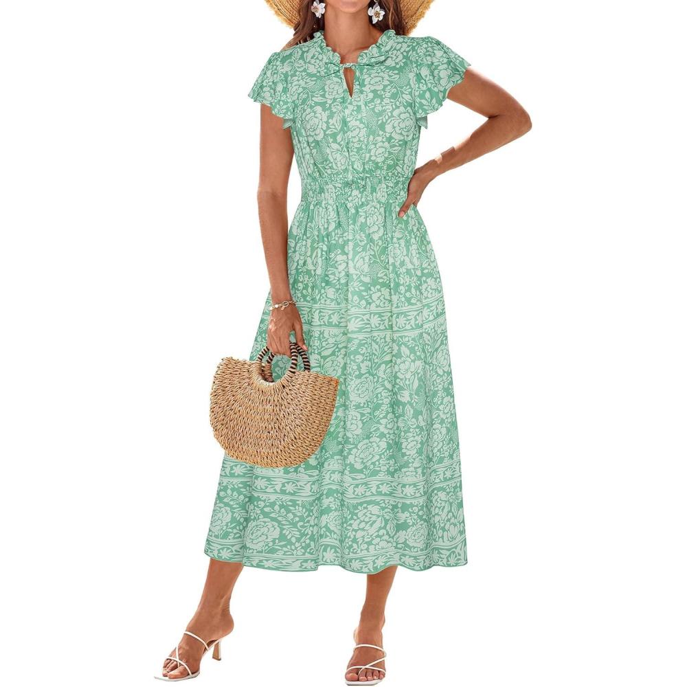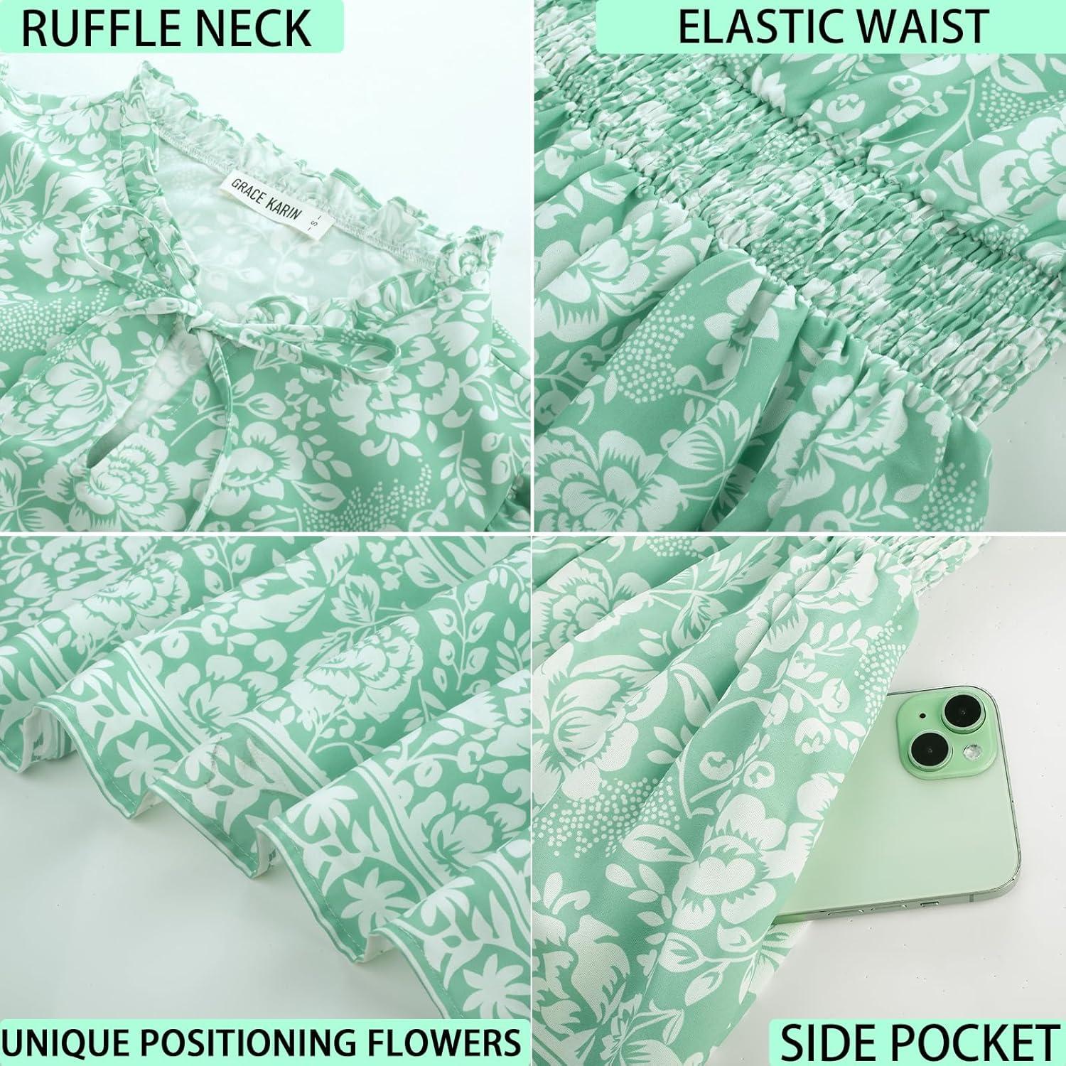Be the first to review “GRACE KARIN Women’s Floral Boho Dress Hawaiian Dresse Short Sleeve V Neck Summer Beach Wedding Guest Swing Maxi Sundress(Green White Floral)” Cancel reply