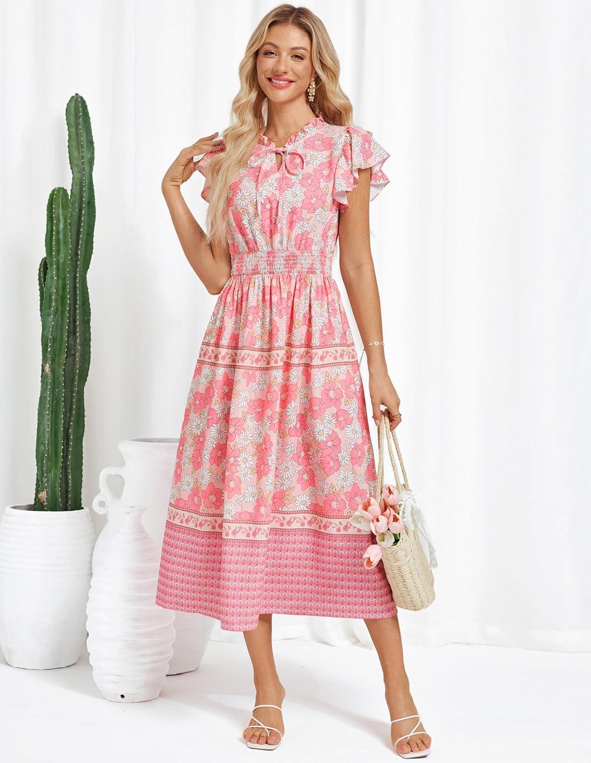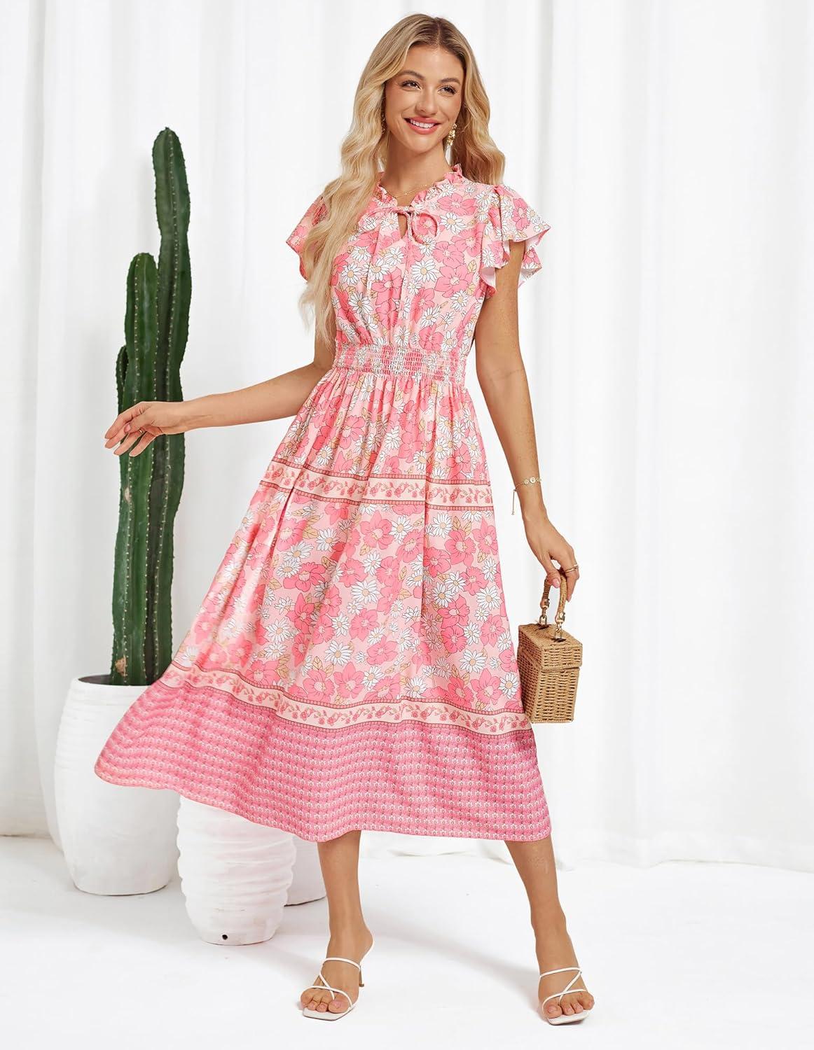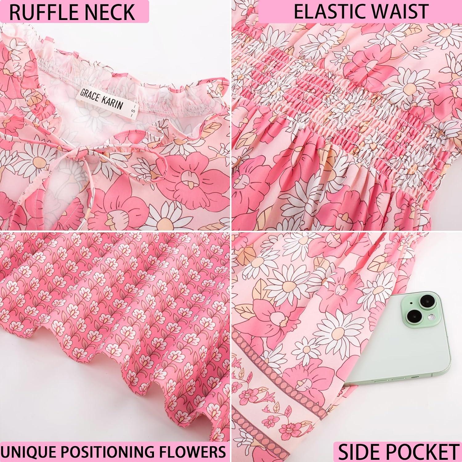 Be the first to review “GRACE KARIN Women’s Floral Boho Dress Hawaiian Dresse Short Sleeve V Neck Summer Beach Wedding Guest Swing Maxi Sundress(Pink Flowers)” Cancel reply