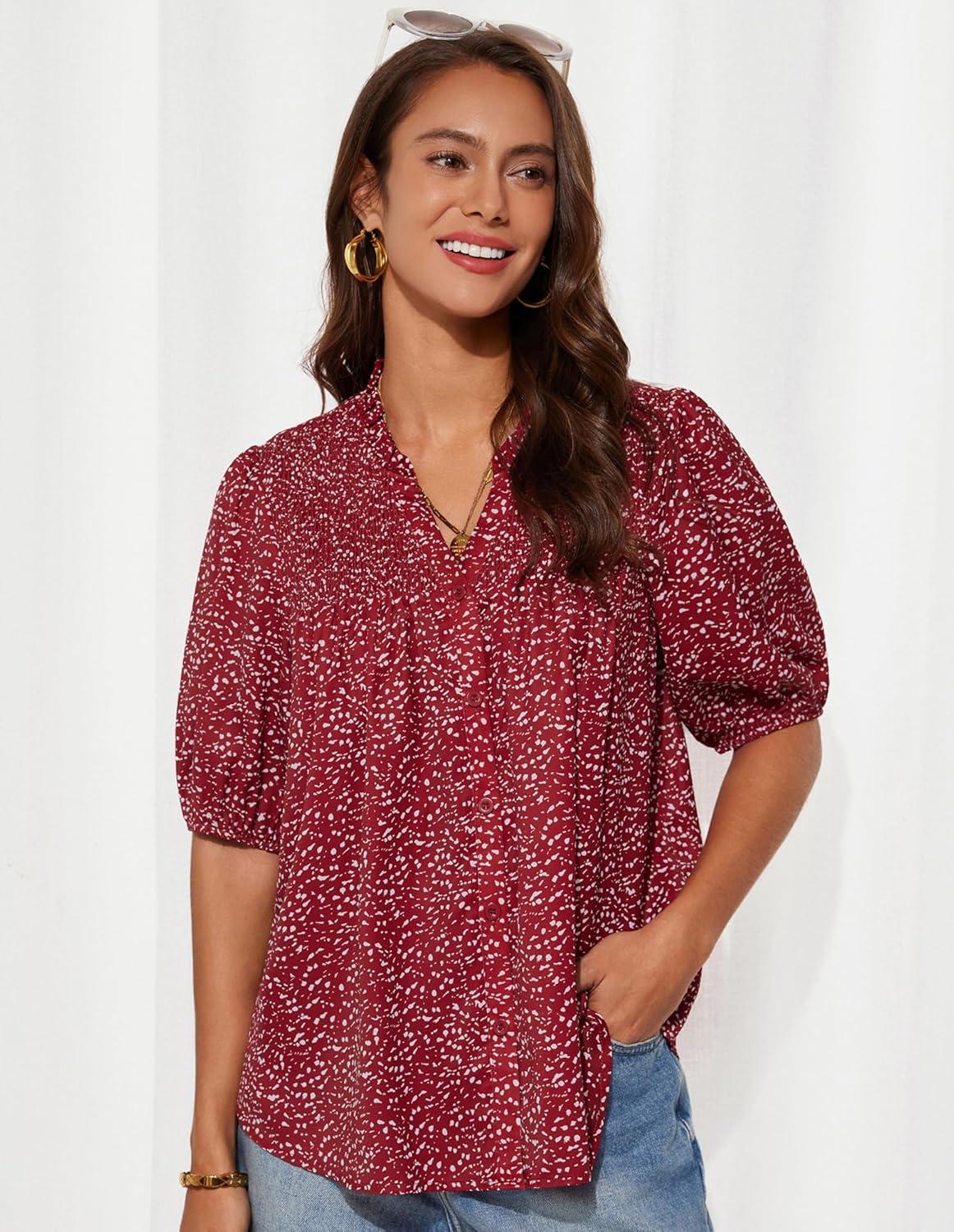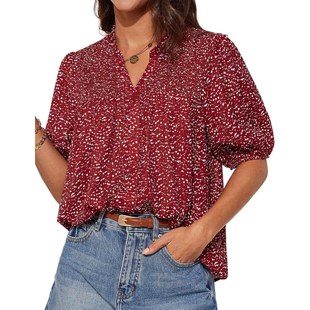 Get more for your money with our exclusive bundle deals on GRACE KARIN Womens Floral Button Down Shirts 2025 Puff Half Sleeve V Neck Summer Casual Loose Chiffon Blouse Tops(Red Polka Dots) and accessories.