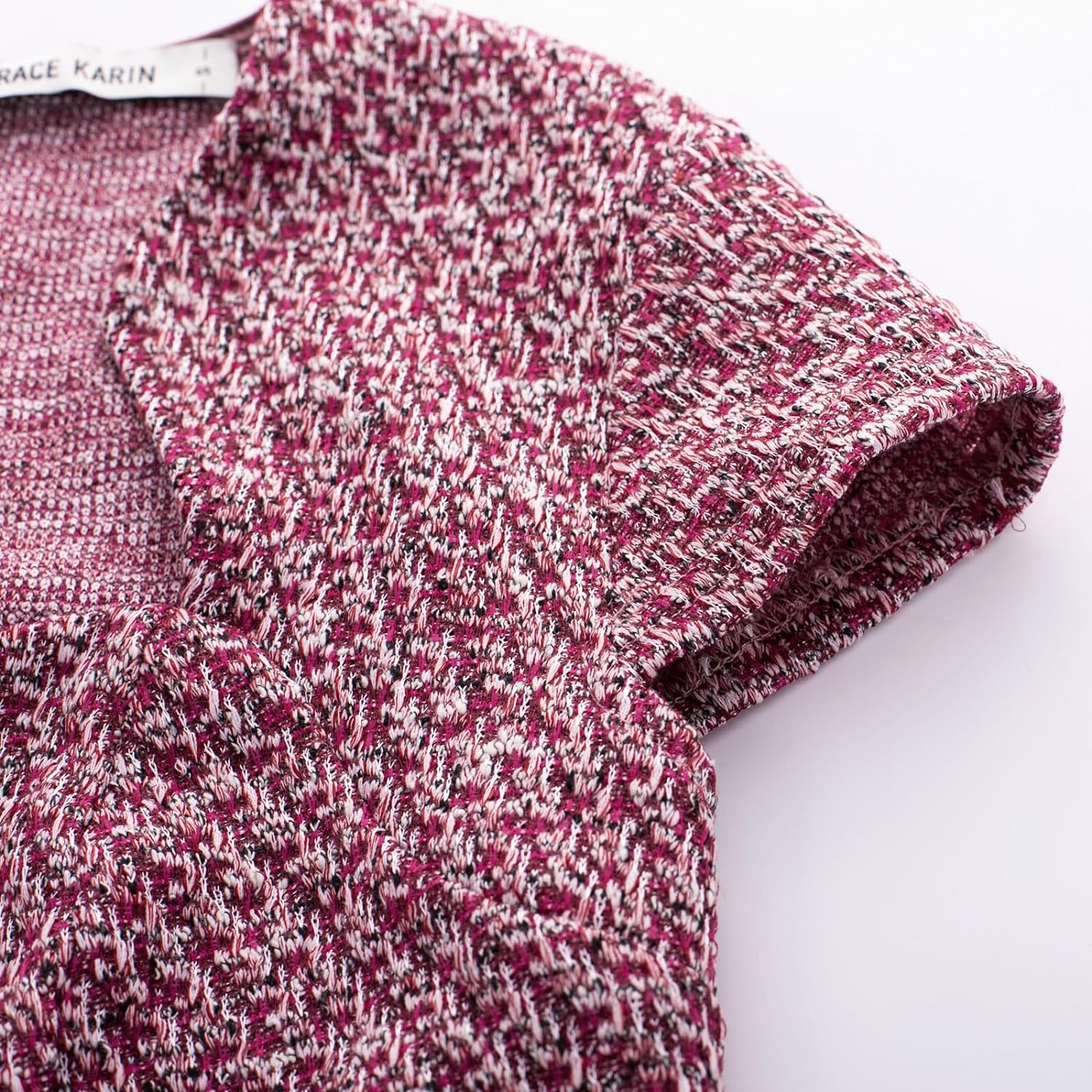 GRACE KARIN Womens Gorgeous Work Pencil Dress Cap Sleeve Sexy Bodycon DressRose Red Seersucker