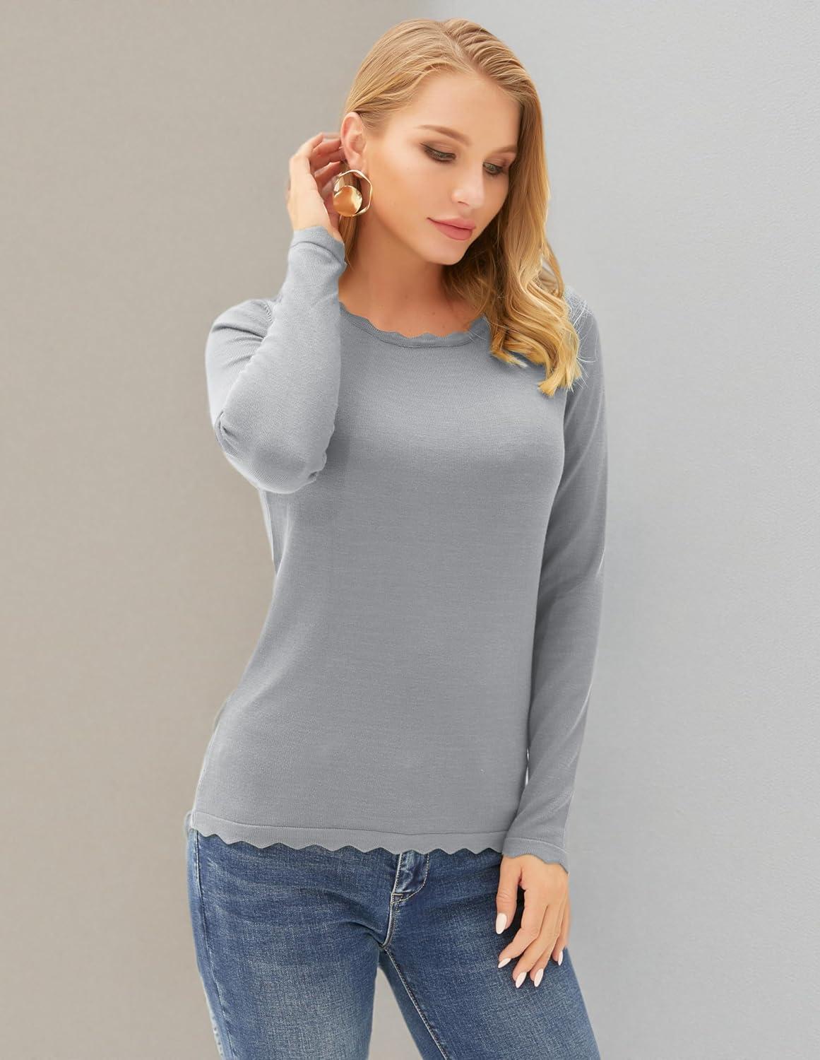 GRACE KARIN Women’s High Stretchy Long Sleeve Pullover Sweater Blouse Top(Light Grey)
