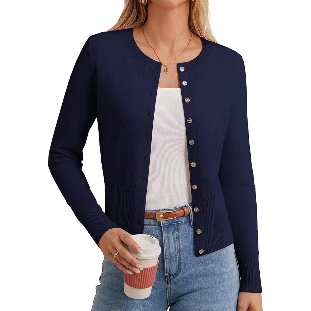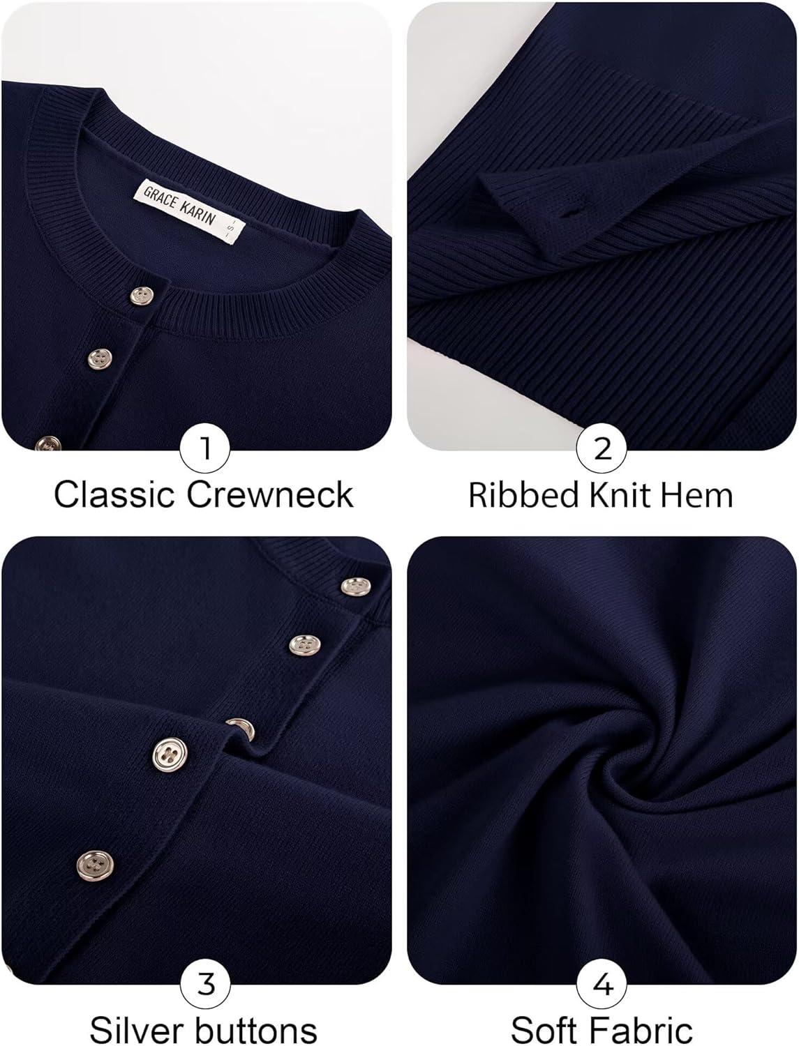 Get up to 50% off on GRACE KARIN Women’s Lightweight Fall Cardigan, Long Sleeve Knit Crop Sweater Trendy, Button Open Front Crewneck Jacket(Navy Blue) styles during our spring sale event.
