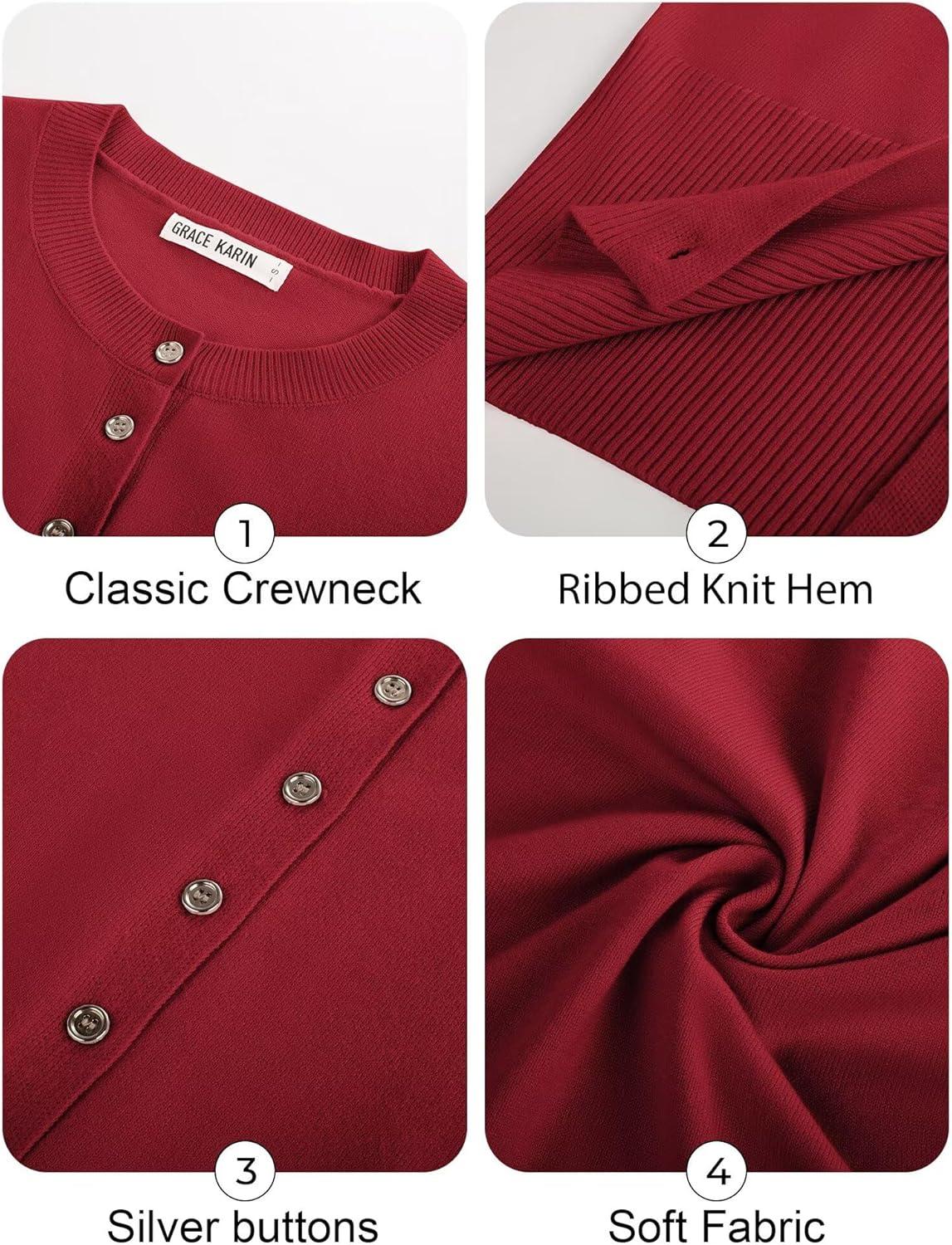 imageGRACE KARIN Womens Lightweight Fall Cardigan Long Sleeve Knit Crop Sweater Trendy Button Open Front Crewneck JacketRed